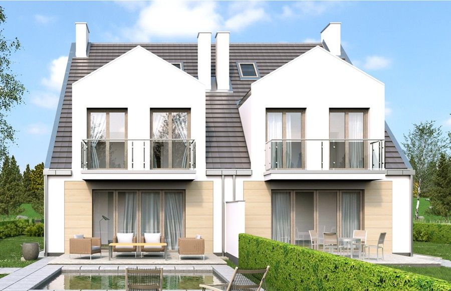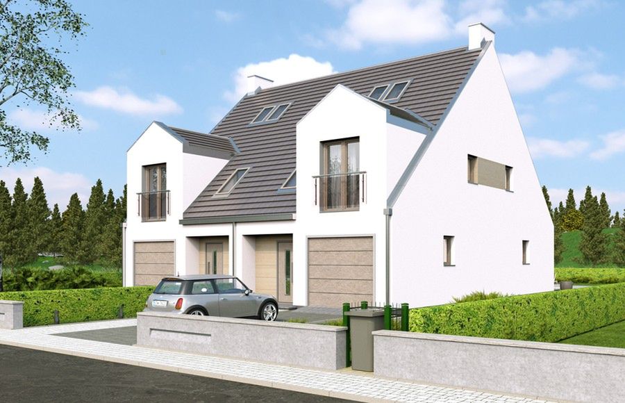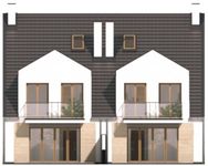 Graficzne opracowanie rzutów poglądowych widocznych na karcie projektu zostało wykonane przez Extradom.pl. Prezentowane przez Extradom.pl wizualizacje wykonane zostały przez autora projektu i należy poczytywać je jedynie za przykład i propozycję wykończenia, wizję architektoniczną autora projektu. Ostateczne wykończenie budynku może nastąpić na wiele sposobów. Szczegółowe rozwiązania zastosowane w oferowanej dokumentacji - w tym również ilość, lokalizacje i wygląd okien, drzwi, kominów - mogą w niewielkim stopniu różnić się od prezentowanej wizualizacji budynku.