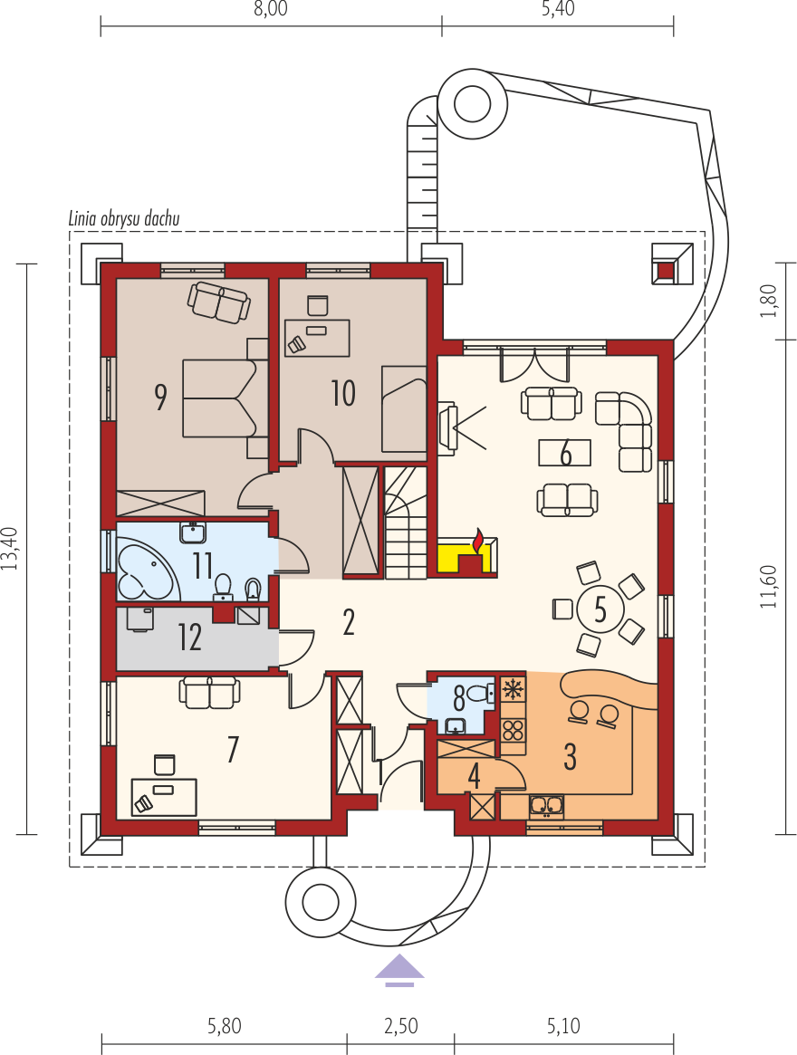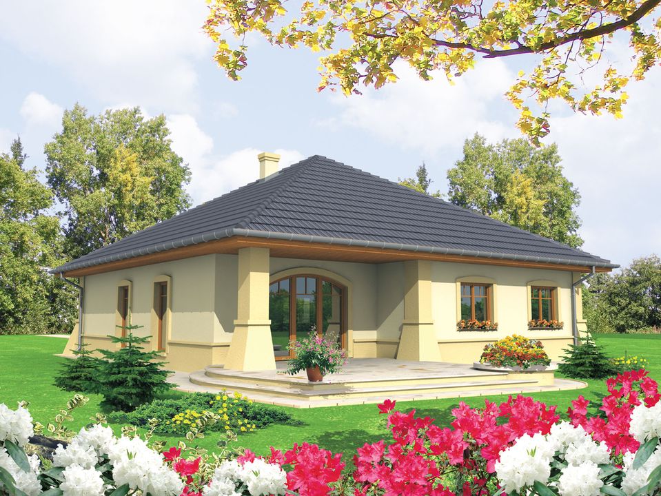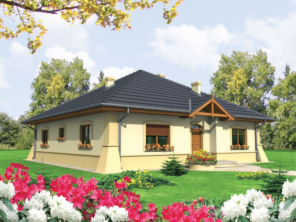 Graficzne opracowanie rzutów poglądowych widocznych na karcie projektu zostało wykonane przez Extradom.pl. Prezentowane przez Extradom.pl wizualizacje wykonane zostały przez autora projektu i należy poczytywać je jedynie za przykład i propozycję wykończenia, wizję architektoniczną autora projektu. Ostateczne wykończenie budynku może nastąpić na wiele sposobów. Szczegółowe rozwiązania zastosowane w oferowanej dokumentacji - w tym również ilość, lokalizacje i wygląd okien, drzwi, kominów - mogą w niewielkim stopniu różnić się od prezentowanej wizualizacji budynku.