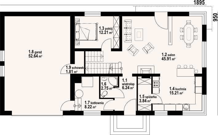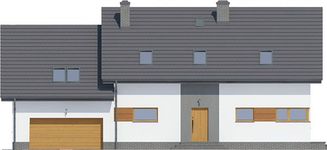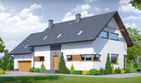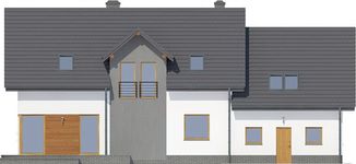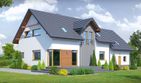 Graficzne opracowanie rzutów poglądowych widocznych na karcie projektu zostało wykonane przez Extradom.pl. Prezentowane przez Extradom.pl wizualizacje wykonane zostały przez autora projektu i należy poczytywać je jedynie za przykład i propozycję wykończenia, wizję architektoniczną autora projektu. Ostateczne wykończenie budynku może nastąpić na wiele sposobów. Szczegółowe rozwiązania zastosowane w oferowanej dokumentacji - w tym również ilość, lokalizacje i wygląd okien, drzwi, kominów - mogą w niewielkim stopniu różnić się od prezentowanej wizualizacji budynku.