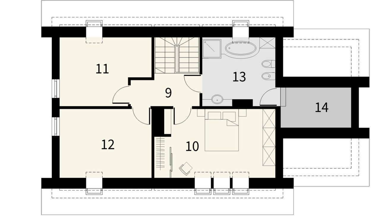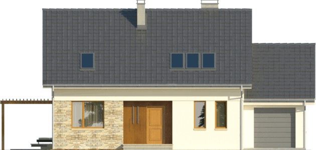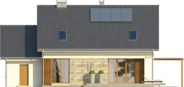 Graficzne opracowanie rzutów poglądowych widocznych na karcie projektu zostało wykonane przez Extradom.pl. Prezentowane przez Extradom.pl wizualizacje wykonane zostały przez autora projektu i należy poczytywać je jedynie za przykład i propozycję wykończenia, wizję architektoniczną autora projektu. Ostateczne wykończenie budynku może nastąpić na wiele sposobów. Szczegółowe rozwiązania zastosowane w oferowanej dokumentacji - w tym również ilość, lokalizacje i wygląd okien, drzwi, kominów - mogą w niewielkim stopniu różnić się od prezentowanej wizualizacji budynku.