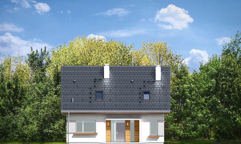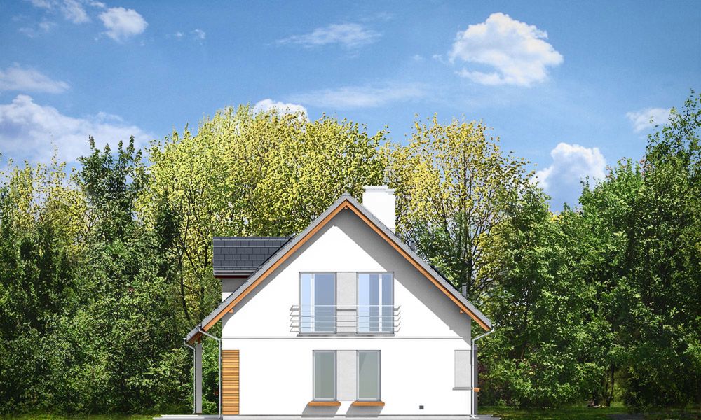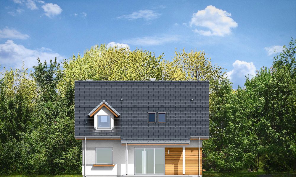 Graficzne opracowanie rzutów poglądowych widocznych na karcie projektu zostało wykonane przez Extradom.pl. Prezentowane przez Extradom.pl wizualizacje wykonane zostały przez autora projektu i należy poczytywać je jedynie za przykład i propozycję wykończenia, wizję architektoniczną autora projektu. Ostateczne wykończenie budynku może nastąpić na wiele sposobów. Szczegółowe rozwiązania zastosowane w oferowanej dokumentacji - w tym również ilość, lokalizacje i wygląd okien, drzwi, kominów - mogą w niewielkim stopniu różnić się od prezentowanej wizualizacji budynku.