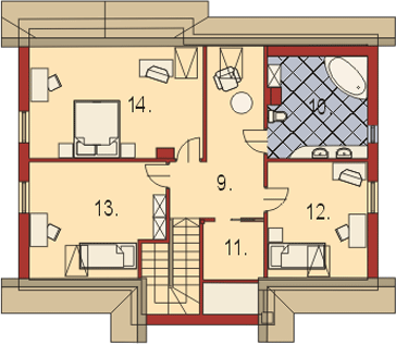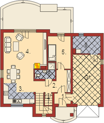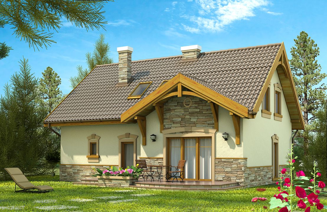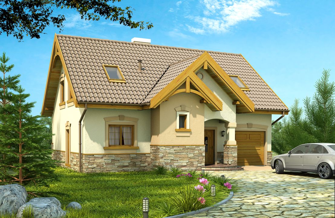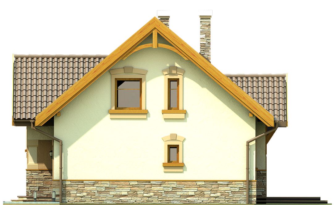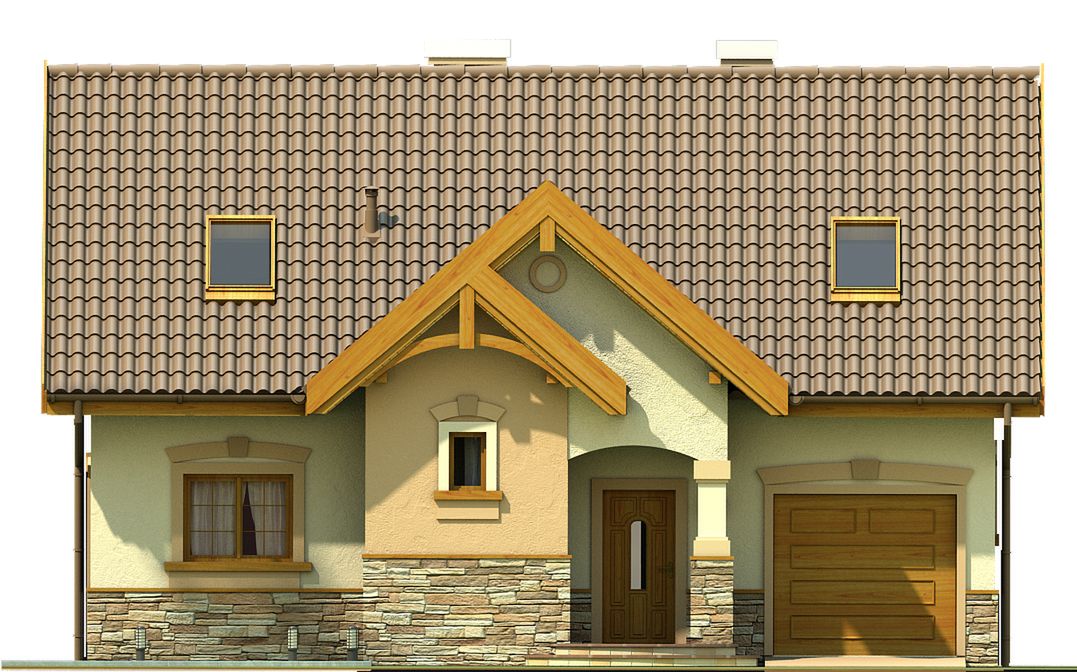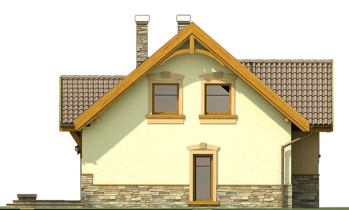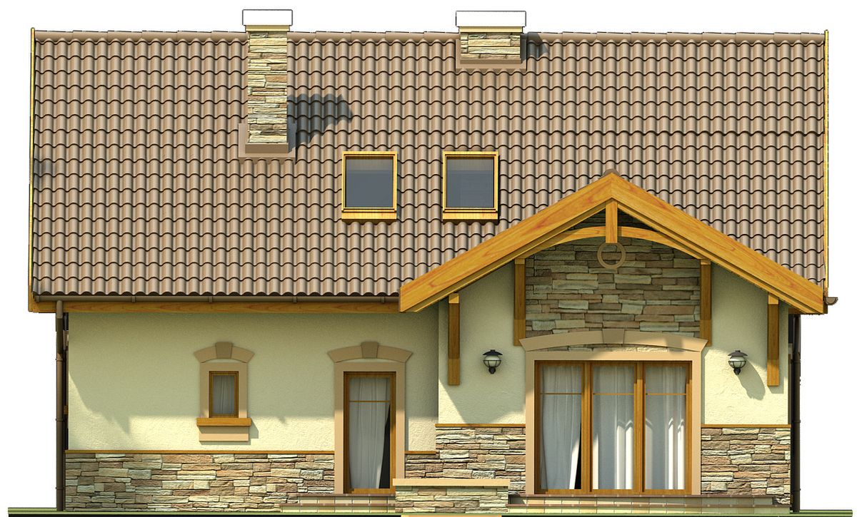 Graficzne opracowanie rzutów poglądowych widocznych na karcie projektu zostało wykonane przez Extradom.pl. Prezentowane przez Extradom.pl wizualizacje wykonane zostały przez autora projektu i należy poczytywać je jedynie za przykład i propozycję wykończenia, wizję architektoniczną autora projektu. Ostateczne wykończenie budynku może nastąpić na wiele sposobów. Szczegółowe rozwiązania zastosowane w oferowanej dokumentacji - w tym również ilość, lokalizacje i wygląd okien, drzwi, kominów - mogą w niewielkim stopniu różnić się od prezentowanej wizualizacji budynku.