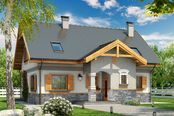 Graficzne opracowanie rzutów poglądowych widocznych na karcie projektu zostało wykonane przez Extradom.pl. Prezentowane przez Extradom.pl wizualizacje wykonane zostały przez autora projektu i należy poczytywać je jedynie za przykład i propozycję wykończenia, wizję architektoniczną autora projektu. Ostateczne wykończenie budynku może nastąpić na wiele sposobów. Szczegółowe rozwiązania zastosowane w oferowanej dokumentacji - w tym również ilość, lokalizacje i wygląd okien, drzwi, kominów - mogą w niewielkim stopniu różnić się od prezentowanej wizualizacji budynku.