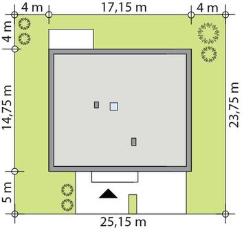 Graficzne opracowanie rzutów poglądowych widocznych na karcie projektu zostało wykonane przez Extradom.pl. Prezentowane przez Extradom.pl wizualizacje wykonane zostały przez autora projektu i należy poczytywać je jedynie za przykład i propozycję wykończenia, wizję architektoniczną autora projektu. Ostateczne wykończenie budynku może nastąpić na wiele sposobów. Szczegółowe rozwiązania zastosowane w oferowanej dokumentacji - w tym również ilość, lokalizacje i wygląd okien, drzwi, kominów - mogą w niewielkim stopniu różnić się od prezentowanej wizualizacji budynku.