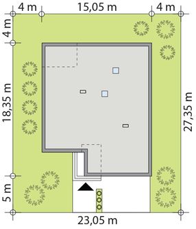 Graficzne opracowanie rzutów poglądowych widocznych na karcie projektu zostało wykonane przez Extradom.pl. Prezentowane przez Extradom.pl wizualizacje wykonane zostały przez autora projektu i należy poczytywać je jedynie za przykład i propozycję wykończenia, wizję architektoniczną autora projektu. Ostateczne wykończenie budynku może nastąpić na wiele sposobów. Szczegółowe rozwiązania zastosowane w oferowanej dokumentacji - w tym również ilość, lokalizacje i wygląd okien, drzwi, kominów - mogą w niewielkim stopniu różnić się od prezentowanej wizualizacji budynku.