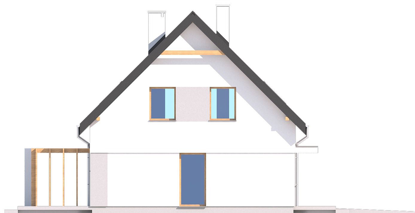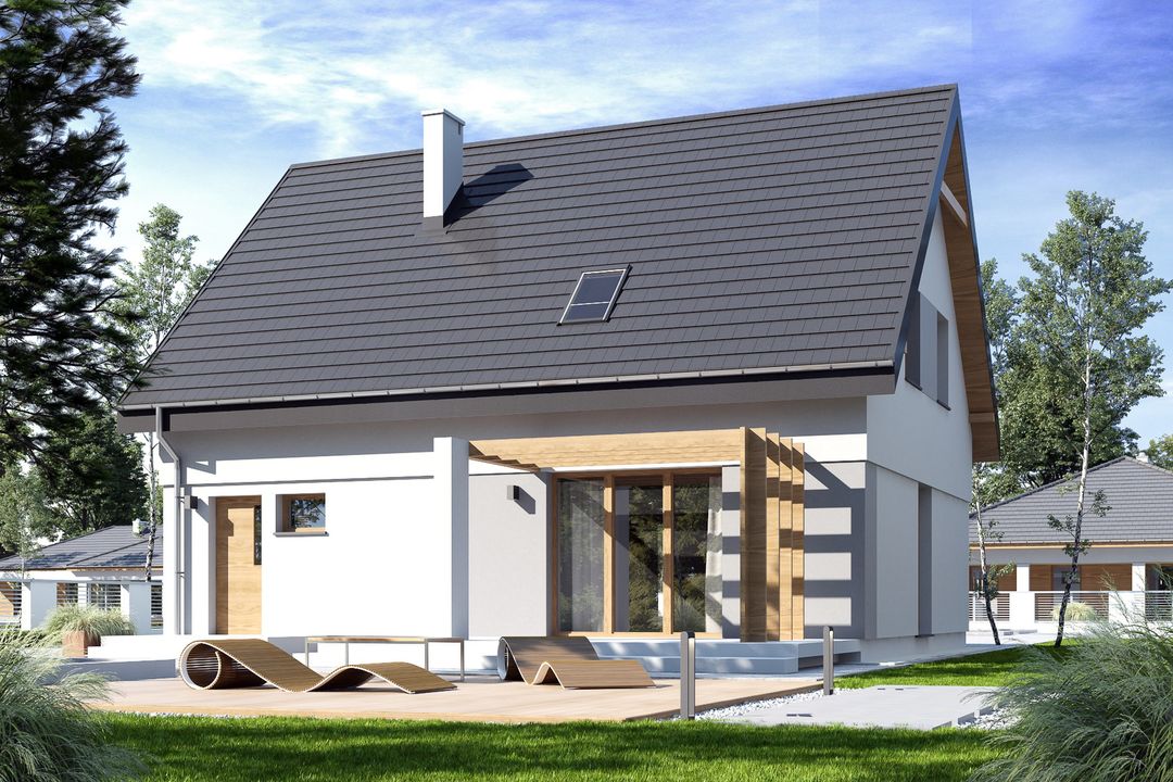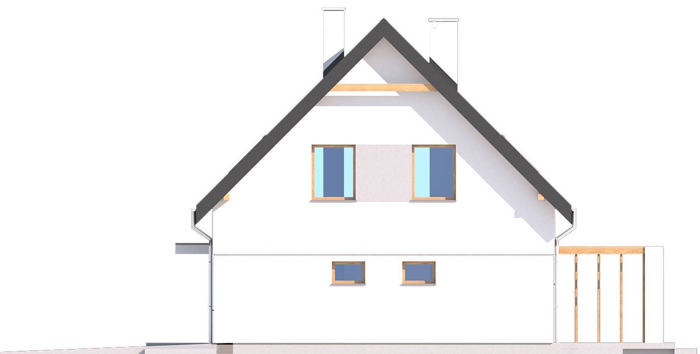 Graficzne opracowanie rzutów poglądowych widocznych na karcie projektu zostało wykonane przez Extradom.pl. Prezentowane przez Extradom.pl wizualizacje wykonane zostały przez autora projektu i należy poczytywać je jedynie za przykład i propozycję wykończenia, wizję architektoniczną autora projektu. Ostateczne wykończenie budynku może nastąpić na wiele sposobów. Szczegółowe rozwiązania zastosowane w oferowanej dokumentacji - w tym również ilość, lokalizacje i wygląd okien, drzwi, kominów - mogą w niewielkim stopniu różnić się od prezentowanej wizualizacji budynku.