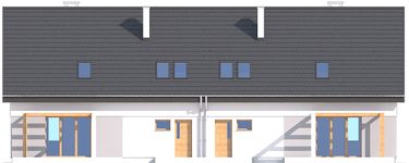 Graficzne opracowanie rzutów poglądowych widocznych na karcie projektu zostało wykonane przez Extradom.pl. Prezentowane przez Extradom.pl wizualizacje wykonane zostały przez autora projektu i należy poczytywać je jedynie za przykład i propozycję wykończenia, wizję architektoniczną autora projektu. Ostateczne wykończenie budynku może nastąpić na wiele sposobów. Szczegółowe rozwiązania zastosowane w oferowanej dokumentacji - w tym również ilość, lokalizacje i wygląd okien, drzwi, kominów - mogą w niewielkim stopniu różnić się od prezentowanej wizualizacji budynku.