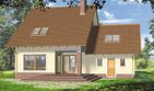 Graficzne opracowanie rzutów poglądowych widocznych na karcie projektu zostało wykonane przez Extradom.pl. Prezentowane przez Extradom.pl wizualizacje wykonane zostały przez autora projektu i należy poczytywać je jedynie za przykład i propozycję wykończenia, wizję architektoniczną autora projektu. Ostateczne wykończenie budynku może nastąpić na wiele sposobów. Szczegółowe rozwiązania zastosowane w oferowanej dokumentacji - w tym również ilość, lokalizacje i wygląd okien, drzwi, kominów - mogą w niewielkim stopniu różnić się od prezentowanej wizualizacji budynku.