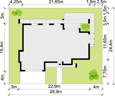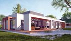 Graficzne opracowanie rzutów poglądowych widocznych na karcie projektu zostało wykonane przez Extradom.pl. Prezentowane przez Extradom.pl wizualizacje wykonane zostały przez autora projektu i należy poczytywać je jedynie za przykład i propozycję wykończenia, wizję architektoniczną autora projektu. Ostateczne wykończenie budynku może nastąpić na wiele sposobów. Szczegółowe rozwiązania zastosowane w oferowanej dokumentacji - w tym również ilość, lokalizacje i wygląd okien, drzwi, kominów - mogą w niewielkim stopniu różnić się od prezentowanej wizualizacji budynku.