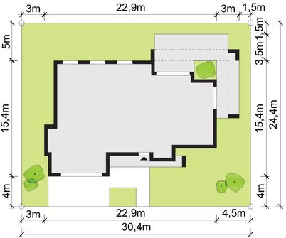Graficzne opracowanie rzutów poglądowych widocznych na karcie projektu zostało wykonane przez Extradom.pl. Prezentowane przez Extradom.pl wizualizacje wykonane zostały przez autora projektu i należy poczytywać je jedynie za przykład i propozycję wykończenia, wizję architektoniczną autora projektu. Ostateczne wykończenie budynku może nastąpić na wiele sposobów. Szczegółowe rozwiązania zastosowane w oferowanej dokumentacji - w tym również ilość, lokalizacje i wygląd okien, drzwi, kominów - mogą w niewielkim stopniu różnić się od prezentowanej wizualizacji budynku.
