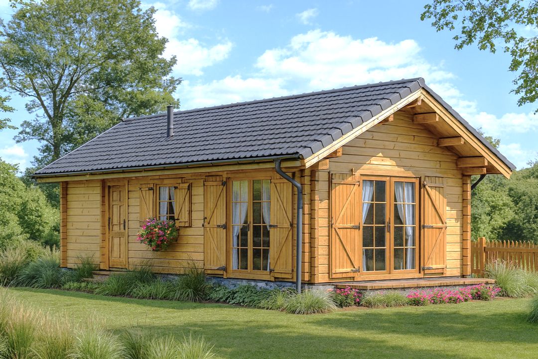 Posadowienie budynku: ława fundamentowa; Ściany zewnętrzne: z balika drewnianego (6cm) + szkieletowa z wełną izolacyjną 20cm; Ściany wewnętrzne: parter: balik drewniany (6cm) lub kosztrukcja szkieletowa z płytami g-k (6cm); piętro: konstrukcja szkieletowa 6cm; Strop nad parterem: drewniany; Konstrukcja dachu: drewniana, krokwiowo-jętkowa; Pokrycie dachu: blachodachówka; Elewacja: balik drewniany (6cm); Istnieje możliwość zamówienia projektu w wersji z kominkiem, poinformuj naszego Doradcę podczas składania zamówienia.