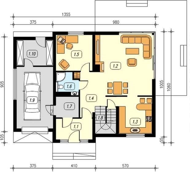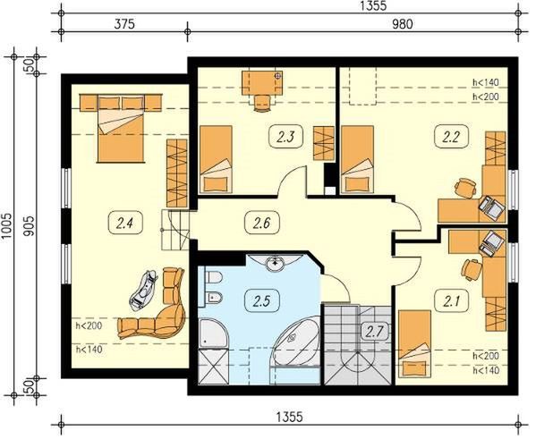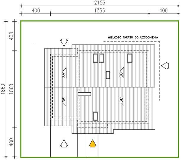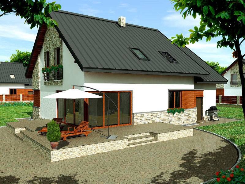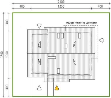 Graficzne opracowanie rzutów poglądowych widocznych na karcie projektu zostało wykonane przez Extradom.pl. Prezentowane przez Extradom.pl wizualizacje wykonane zostały przez autora projektu i należy poczytywać je jedynie za przykład i propozycję wykończenia, wizję architektoniczną autora projektu. Ostateczne wykończenie budynku może nastąpić na wiele sposobów. Szczegółowe rozwiązania zastosowane w oferowanej dokumentacji - w tym również ilość, lokalizacje i wygląd okien, drzwi, kominów - mogą w niewielkim stopniu różnić się od prezentowanej wizualizacji budynku.