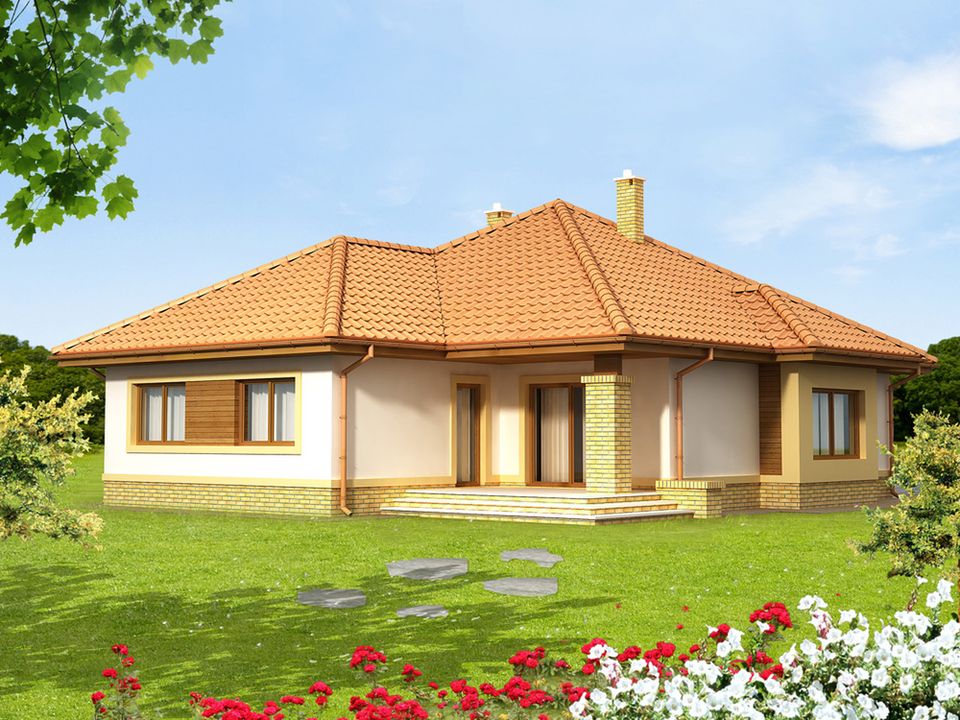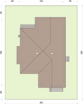Graficzne opracowanie rzutów poglądowych widocznych na karcie projektu zostało wykonane przez Extradom.pl. Prezentowane przez Extradom.pl wizualizacje wykonane zostały przez autora projektu i należy poczytywać je jedynie za przykład i propozycję wykończenia, wizję architektoniczną autora projektu. Ostateczne wykończenie budynku może nastąpić na wiele sposobów. Szczegółowe rozwiązania zastosowane w oferowanej dokumentacji - w tym również ilość, lokalizacje i wygląd okien, drzwi, kominów - mogą w niewielkim stopniu różnić się od prezentowanej wizualizacji budynku.