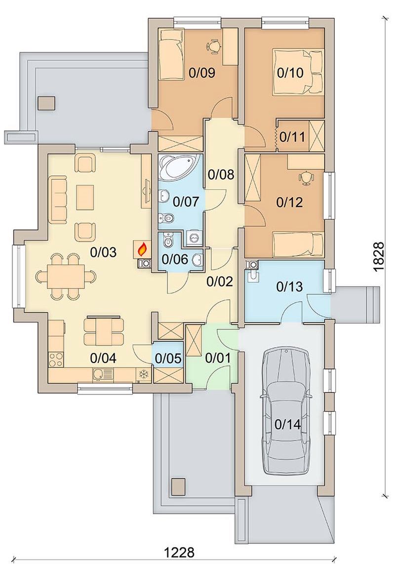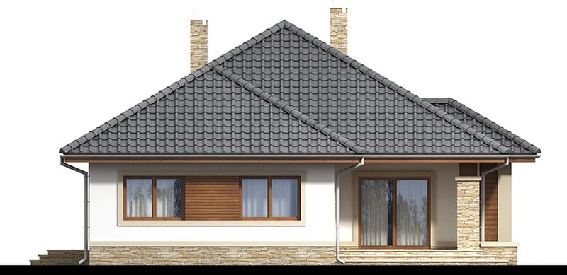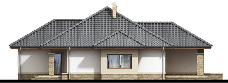 Graficzne opracowanie rzutów poglądowych widocznych na karcie projektu zostało wykonane przez Extradom.pl. Prezentowane przez Extradom.pl wizualizacje wykonane zostały przez autora projektu i należy poczytywać je jedynie za przykład i propozycję wykończenia, wizję architektoniczną autora projektu. Ostateczne wykończenie budynku może nastąpić na wiele sposobów. Szczegółowe rozwiązania zastosowane w oferowanej dokumentacji - w tym również ilość, lokalizacje i wygląd okien, drzwi, kominów - mogą w niewielkim stopniu różnić się od prezentowanej wizualizacji budynku.