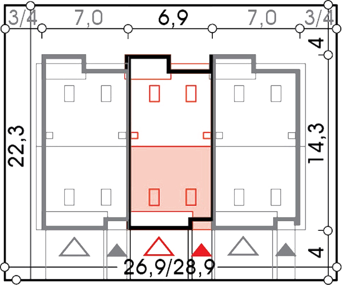 Graficzne opracowanie rzutów poglądowych widocznych na karcie projektu zostało wykonane przez Extradom.pl. Prezentowane przez Extradom.pl wizualizacje wykonane zostały przez autora projektu i należy poczytywać je jedynie za przykład i propozycję wykończenia, wizję architektoniczną autora projektu. Ostateczne wykończenie budynku może nastąpić na wiele sposobów. Szczegółowe rozwiązania zastosowane w oferowanej dokumentacji - w tym również ilość, lokalizacje i wygląd okien, drzwi, kominów - mogą w niewielkim stopniu różnić się od prezentowanej wizualizacji budynku.