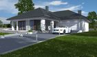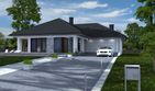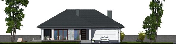 Graficzne opracowanie rzutów poglądowych widocznych na karcie projektu zostało wykonane przez Extradom.pl. Prezentowane przez Extradom.pl wizualizacje wykonane zostały przez autora projektu i należy poczytywać je jedynie za przykład i propozycję wykończenia, wizję architektoniczną autora projektu. Ostateczne wykończenie budynku może nastąpić na wiele sposobów. Szczegółowe rozwiązania zastosowane w oferowanej dokumentacji - w tym również ilość, lokalizacje i wygląd okien, drzwi, kominów - mogą w niewielkim stopniu różnić się od prezentowanej wizualizacji budynku.
