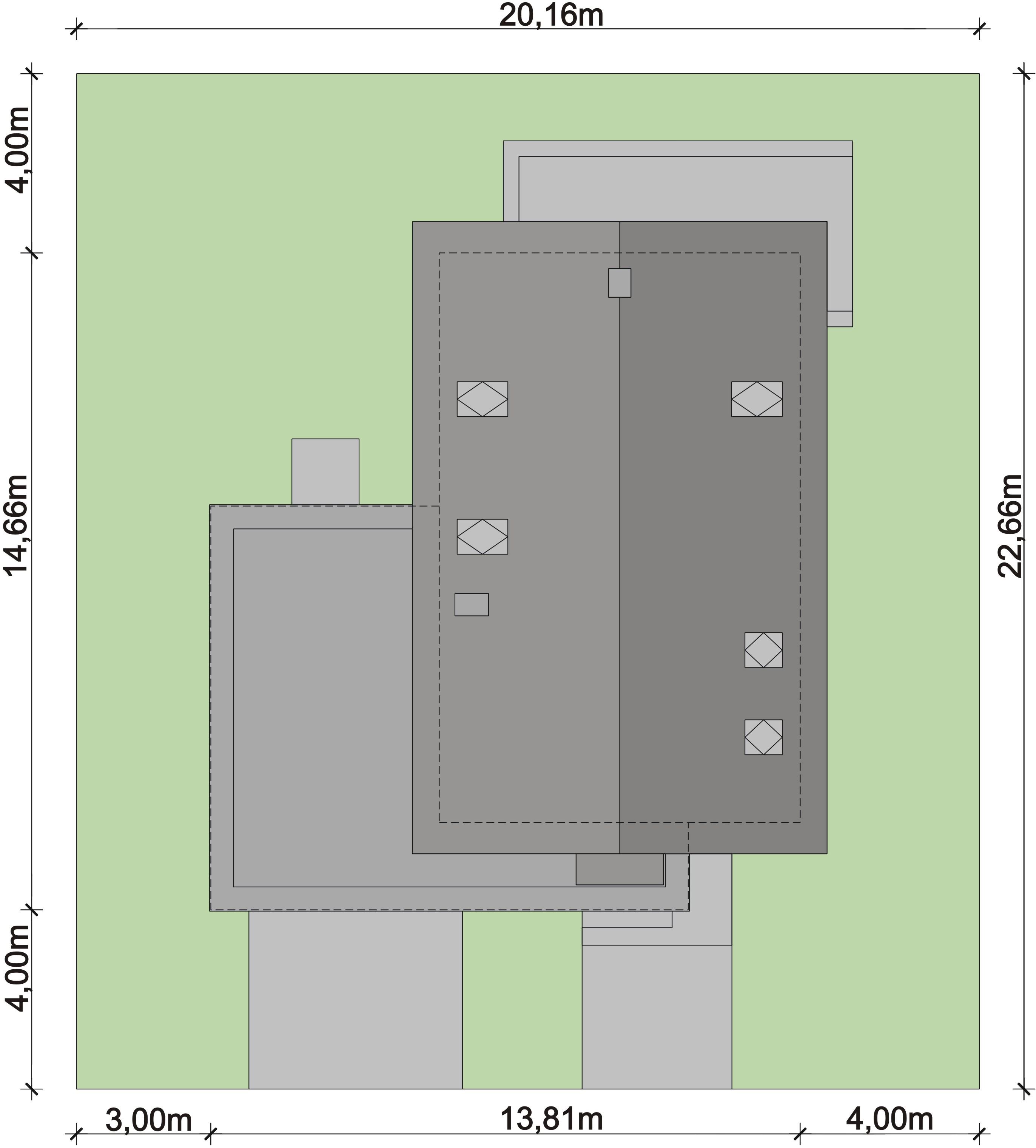 Graficzne opracowanie rzutów poglądowych widocznych na karcie projektu zostało wykonane przez Extradom.pl. Prezentowane przez Extradom.pl wizualizacje wykonane zostały przez autora projektu i należy poczytywać je jedynie za przykład i propozycję wykończenia, wizję architektoniczną autora projektu. Ostateczne wykończenie budynku może nastąpić na wiele sposobów. Szczegółowe rozwiązania zastosowane w oferowanej dokumentacji - w tym również ilość, lokalizacje i wygląd okien, drzwi, kominów - mogą w niewielkim stopniu różnić się od prezentowanej wizualizacji budynku.