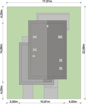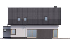 Graficzne opracowanie rzutów poglądowych widocznych na karcie projektu zostało wykonane przez Extradom.pl. Prezentowane przez Extradom.pl wizualizacje wykonane zostały przez autora projektu i należy poczytywać je jedynie za przykład i propozycję wykończenia, wizję architektoniczną autora projektu. Ostateczne wykończenie budynku może nastąpić na wiele sposobów. Szczegółowe rozwiązania zastosowane w oferowanej dokumentacji - w tym również ilość, lokalizacje i wygląd okien, drzwi, kominów - mogą w niewielkim stopniu różnić się od prezentowanej wizualizacji budynku.