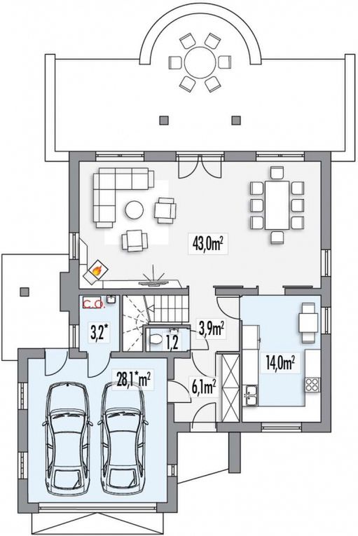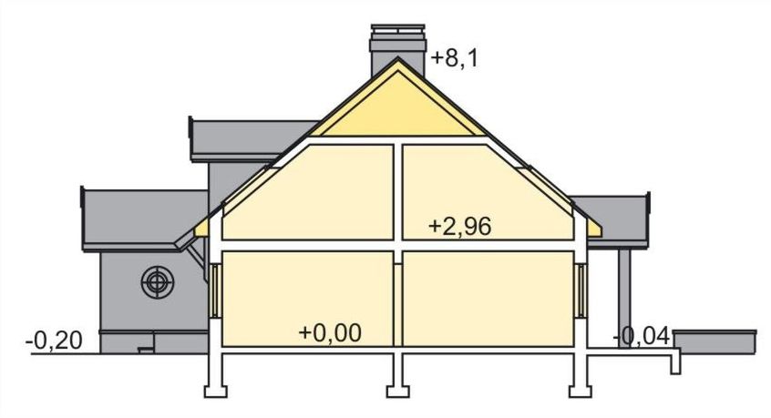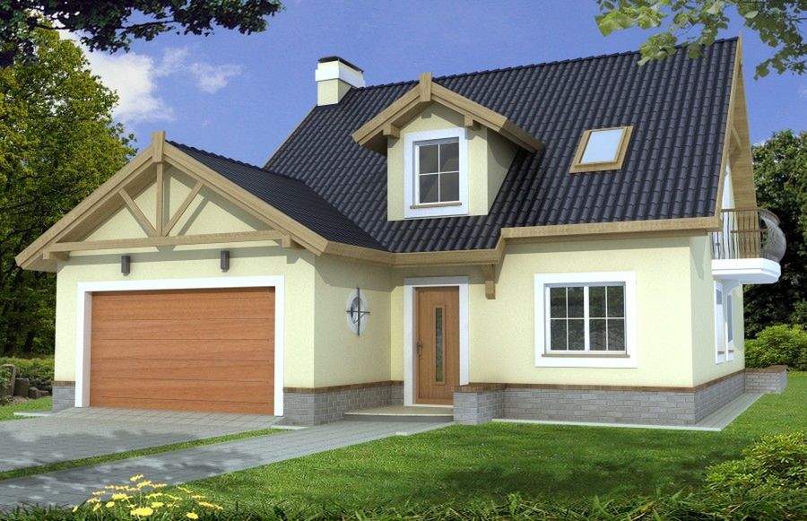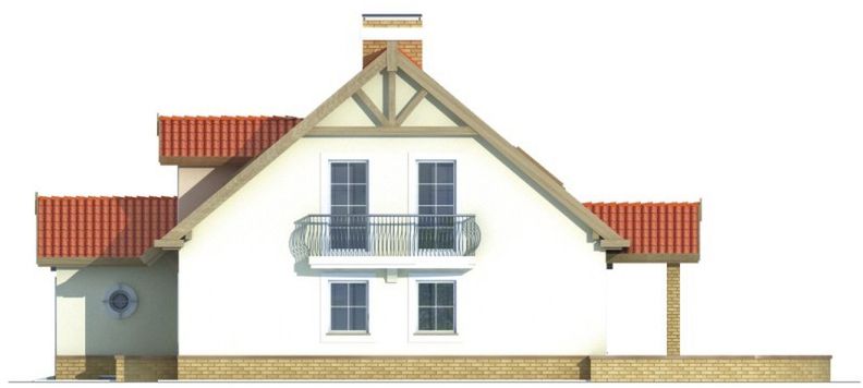 Graficzne opracowanie rzutów poglądowych widocznych na karcie projektu zostało wykonane przez Extradom.pl. Prezentowane przez Extradom.pl wizualizacje wykonane zostały przez autora projektu i należy poczytywać je jedynie za przykład i propozycję wykończenia, wizję architektoniczną autora projektu. Ostateczne wykończenie budynku może nastąpić na wiele sposobów. Szczegółowe rozwiązania zastosowane w oferowanej dokumentacji - w tym również ilość, lokalizacje i wygląd okien, drzwi, kominów - mogą w niewielkim stopniu różnić się od prezentowanej wizualizacji budynku.