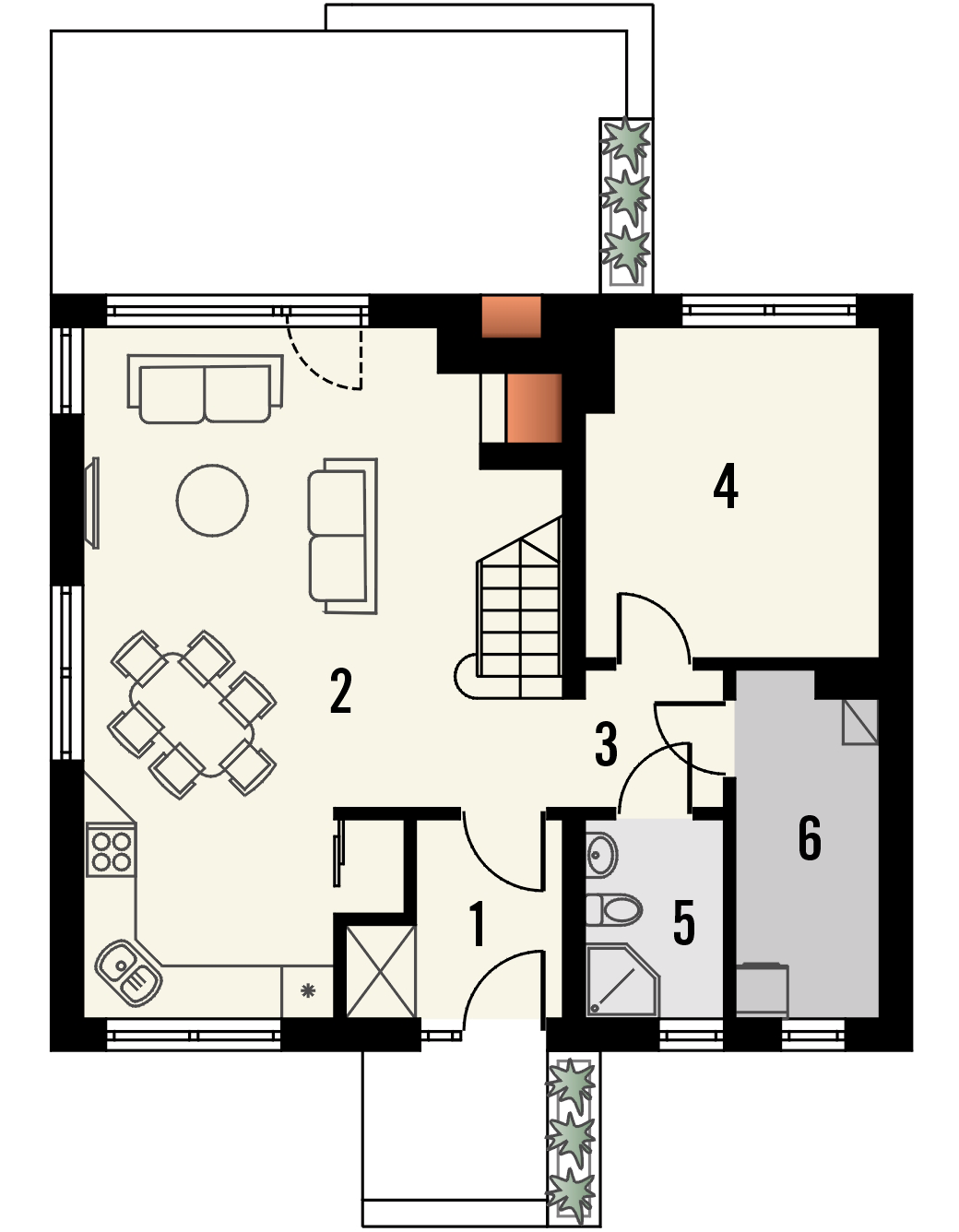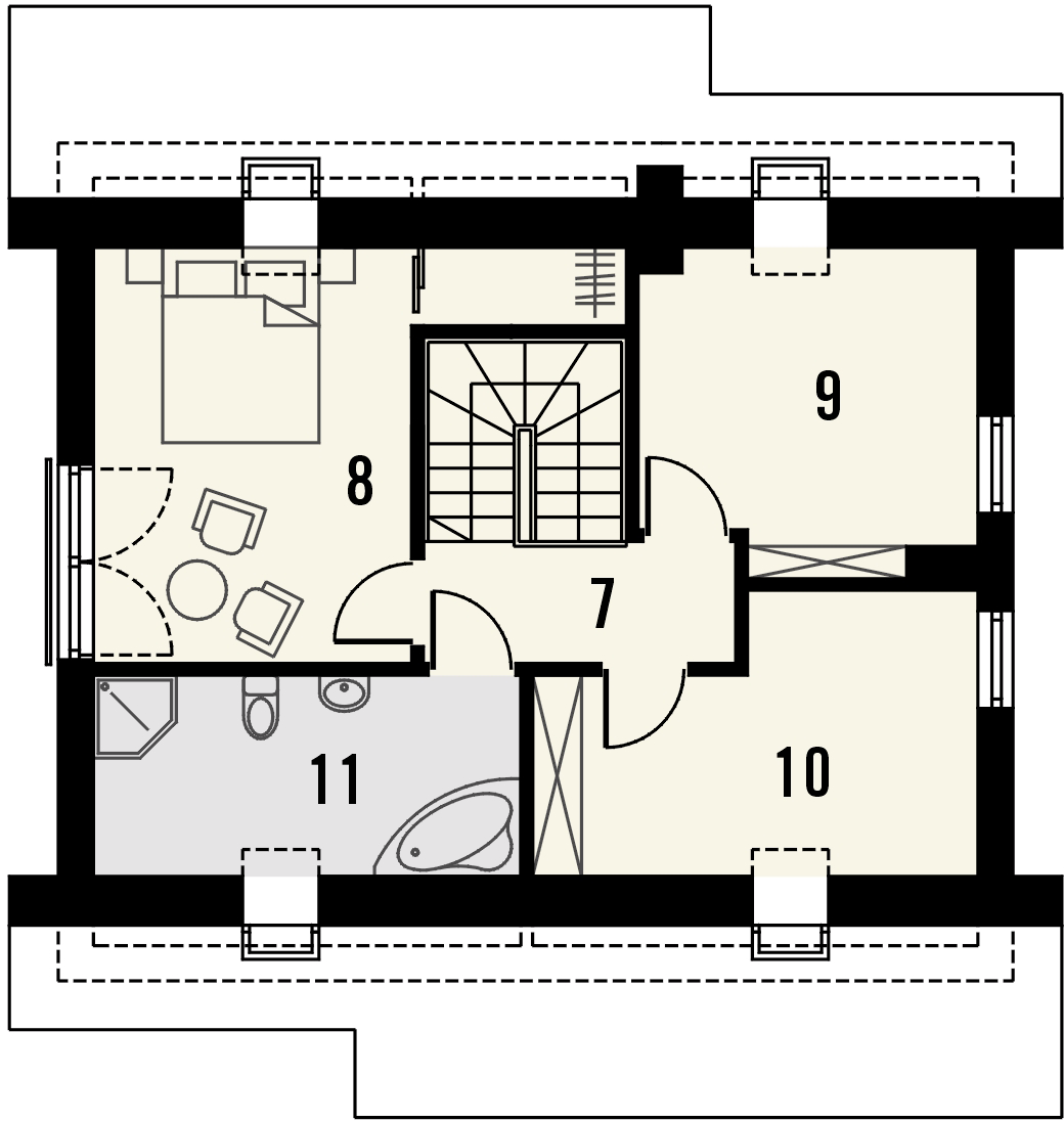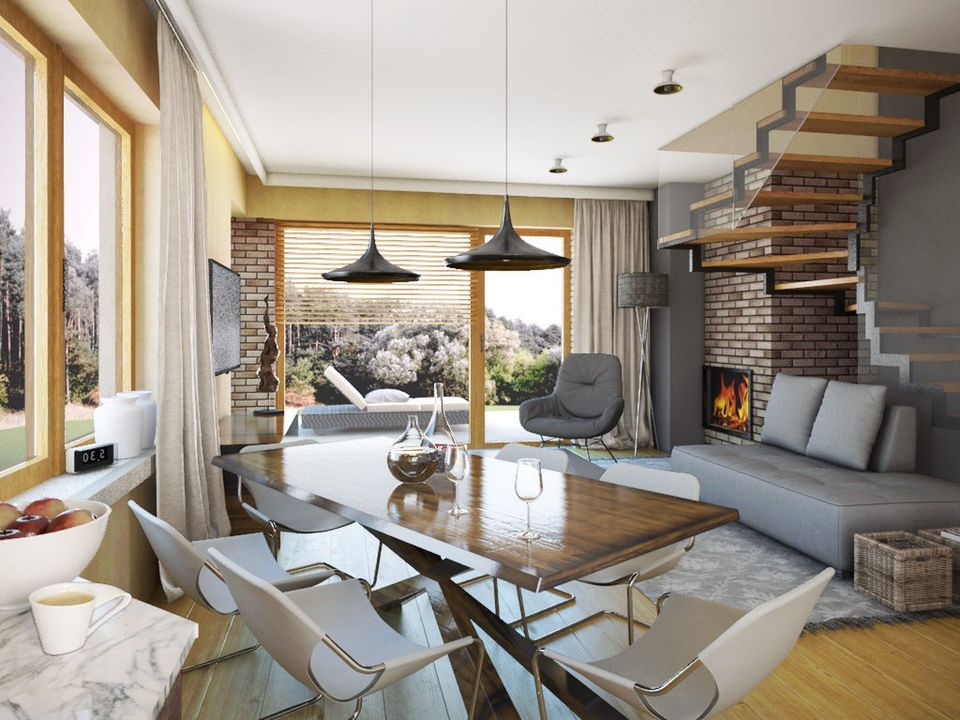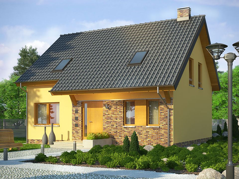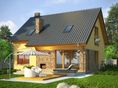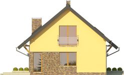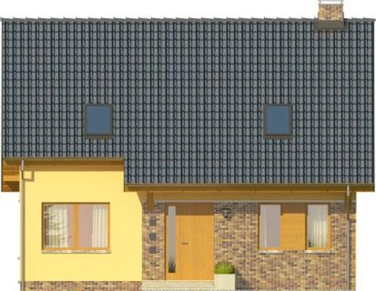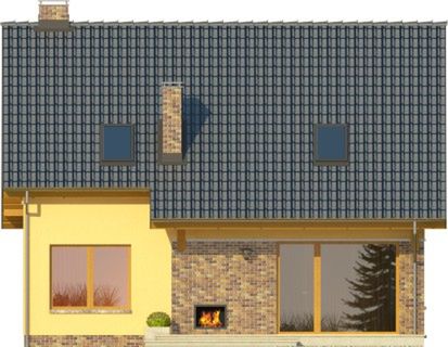 Graficzne opracowanie rzutów poglądowych widocznych na karcie projektu zostało wykonane przez Extradom.pl. Prezentowane przez Extradom.pl wizualizacje wykonane zostały przez autora projektu i należy poczytywać je jedynie za przykład i propozycję wykończenia, wizję architektoniczną autora projektu. Ostateczne wykończenie budynku może nastąpić na wiele sposobów. Szczegółowe rozwiązania zastosowane w oferowanej dokumentacji - w tym również ilość, lokalizacje i wygląd okien, drzwi, kominów - mogą w niewielkim stopniu różnić się od prezentowanej wizualizacji budynku.