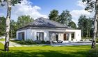 Graficzne opracowanie rzutów poglądowych widocznych na karcie projektu zostało wykonane przez Extradom.pl. Prezentowane przez Extradom.pl wizualizacje wykonane zostały przez autora projektu i należy poczytywać je jedynie za przykład i propozycję wykończenia, wizję architektoniczną autora projektu. Ostateczne wykończenie budynku może nastąpić na wiele sposobów. Szczegółowe rozwiązania zastosowane w oferowanej dokumentacji - w tym również ilość, lokalizacje i wygląd okien, drzwi, kominów - mogą w niewielkim stopniu różnić się od prezentowanej wizualizacji budynku.