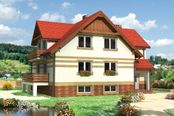 Graficzne opracowanie rzutów poglądowych widocznych na karcie projektu zostało wykonane przez Extradom.pl. Prezentowane przez Extradom.pl wizualizacje wykonane zostały przez autora projektu i należy poczytywać je jedynie za przykład i propozycję wykończenia, wizję architektoniczną autora projektu. Ostateczne wykończenie budynku może nastąpić na wiele sposobów. Szczegółowe rozwiązania zastosowane w oferowanej dokumentacji - w tym również ilość, lokalizacje i wygląd okien, drzwi, kominów - mogą w niewielkim stopniu różnić się od prezentowanej wizualizacji budynku.