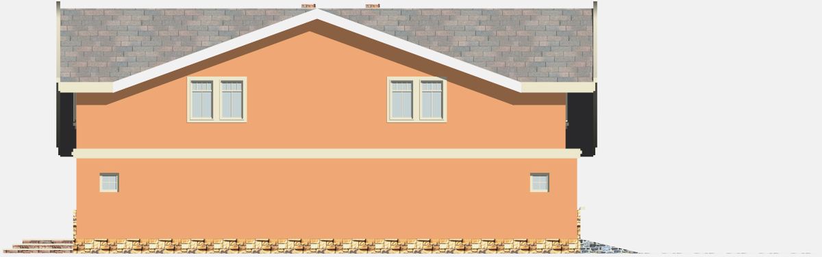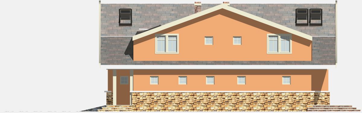Graficzne opracowanie rzutów poglądowych widocznych na karcie projektu zostało wykonane przez Extradom.pl. Prezentowane przez Extradom.pl wizualizacje wykonane zostały przez autora projektu i należy poczytywać je jedynie za przykład i propozycję wykończenia, wizję architektoniczną autora projektu. Ostateczne wykończenie budynku może nastąpić na wiele sposobów. Szczegółowe rozwiązania zastosowane w oferowanej dokumentacji - w tym również ilość, lokalizacje i wygląd okien, drzwi, kominów - mogą w niewielkim stopniu różnić się od prezentowanej wizualizacji budynku.