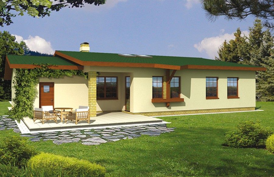 Graficzne opracowanie rzutów poglądowych widocznych na karcie projektu zostało wykonane przez Extradom.pl. Prezentowane przez Extradom.pl wizualizacje wykonane zostały przez autora projektu i należy poczytywać je jedynie za przykład i propozycję wykończenia, wizję architektoniczną autora projektu. Ostateczne wykończenie budynku może nastąpić na wiele sposobów. Szczegółowe rozwiązania zastosowane w oferowanej dokumentacji - w tym również ilość, lokalizacje i wygląd okien, drzwi, kominów - mogą w niewielkim stopniu różnić się od prezentowanej wizualizacji budynku.