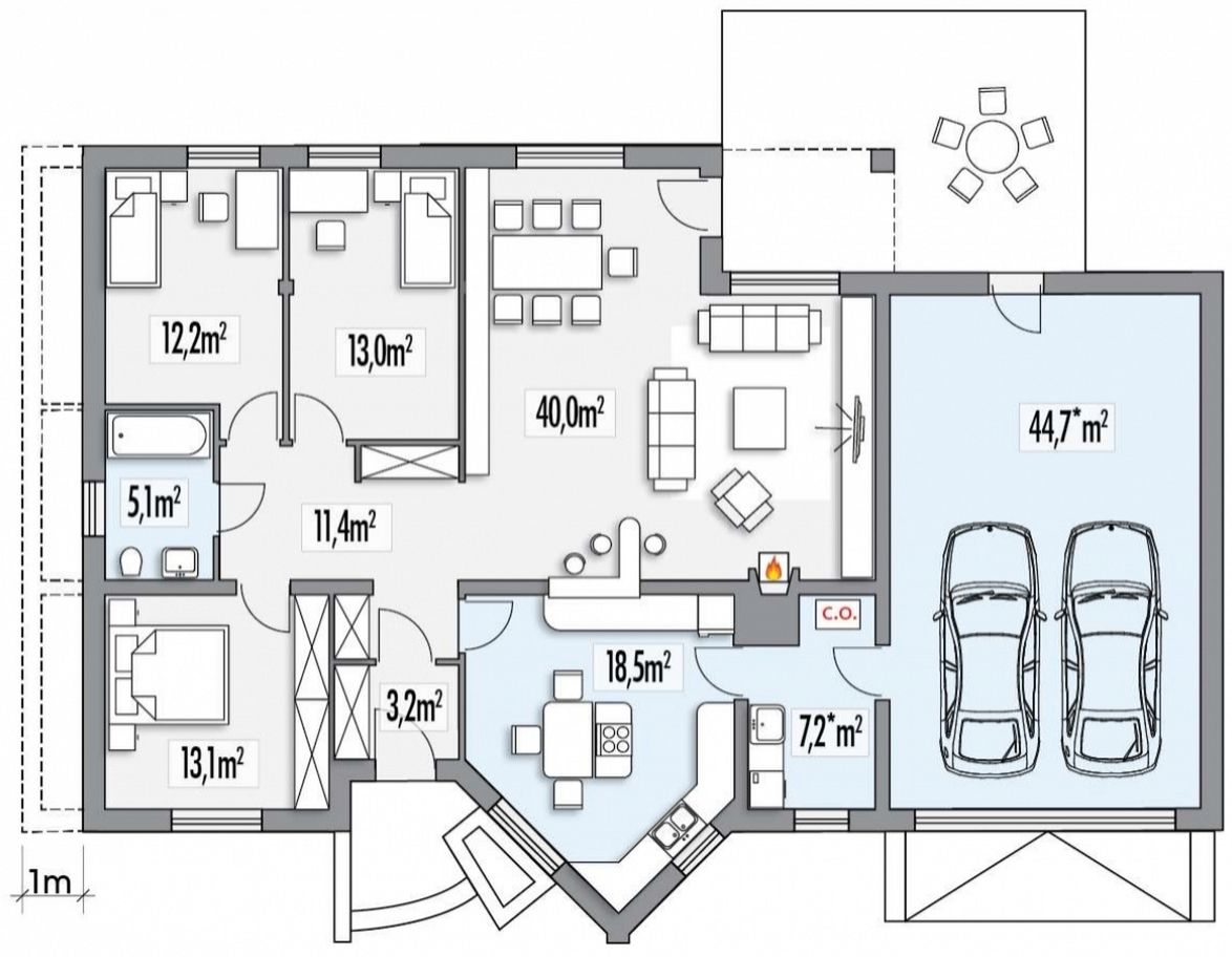 Irys C z powiększoną kotłownią podwójny garaż poszerzony WRD1742