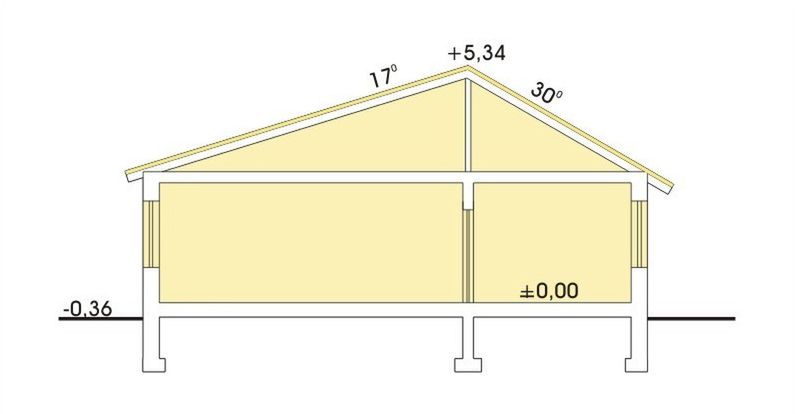 Strop: drewniany. Ściany zewnętrzne: gazobeton 24cm + styropian Termonium Fasada 12cm. Pokrycie dachowe: blachodachówka.