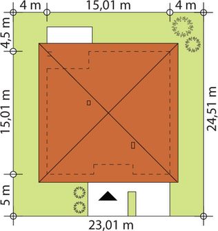 Graficzne opracowanie rzutów poglądowych widocznych na karcie projektu zostało wykonane przez Extradom.pl. Prezentowane przez Extradom.pl wizualizacje wykonane zostały przez autora projektu i należy poczytywać je jedynie za przykład i propozycję wykończenia, wizję architektoniczną autora projektu. Ostateczne wykończenie budynku może nastąpić na wiele sposobów. Szczegółowe rozwiązania zastosowane w oferowanej dokumentacji - w tym również ilość, lokalizacje i wygląd okien, drzwi, kominów - mogą w niewielkim stopniu różnić się od prezentowanej wizualizacji budynku.