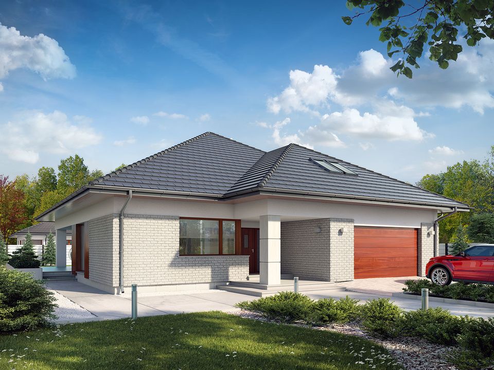 Dach: dachówka lub blachodachówka. Elewacje: tynk. Strop: żelbetowy. Ściany wewnętrzne: murowane. Ściany zewnętrzne: dwuwarstwowe, pustak ceramiczny, docieplony styropianem. Ogrzewanie: kocioł gazowy lub kocioł na paliwo stałe.