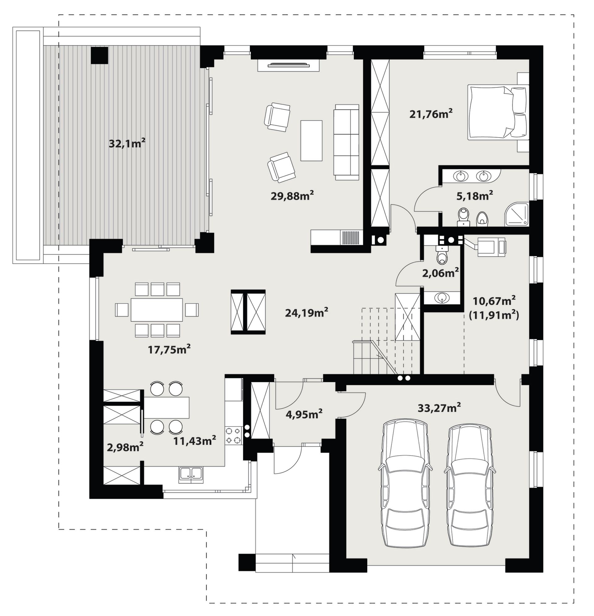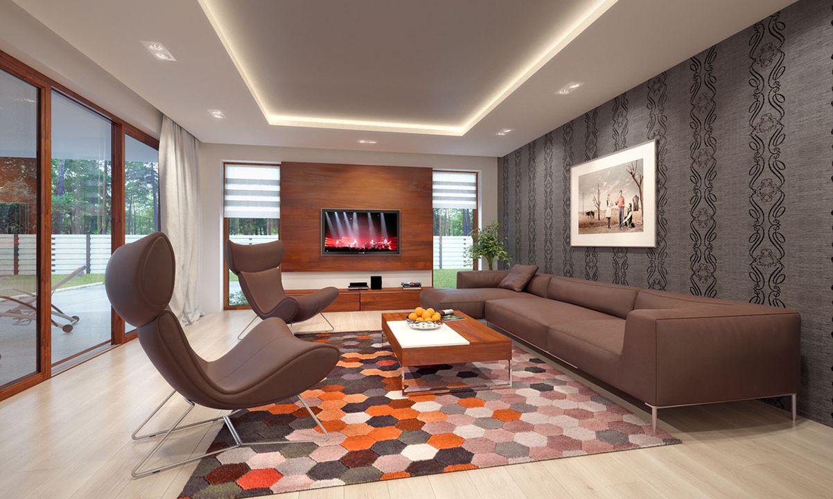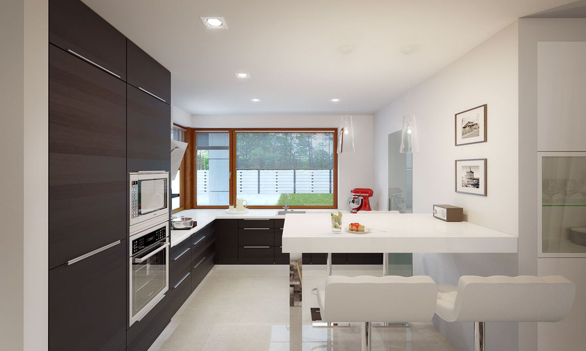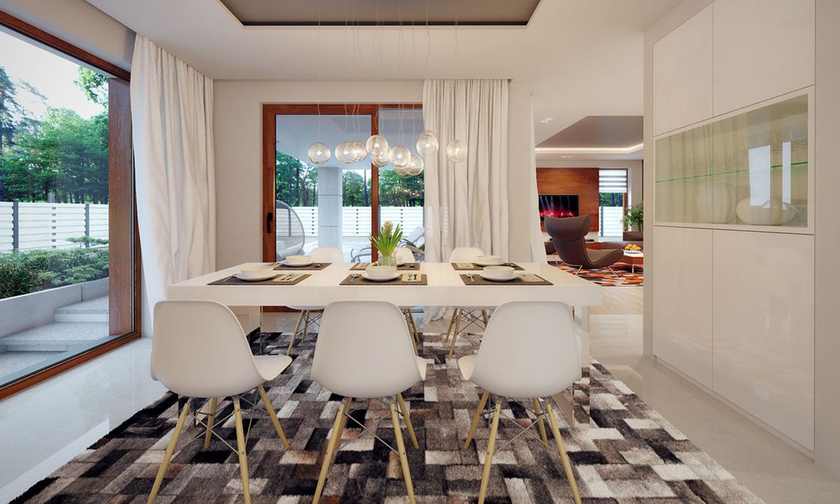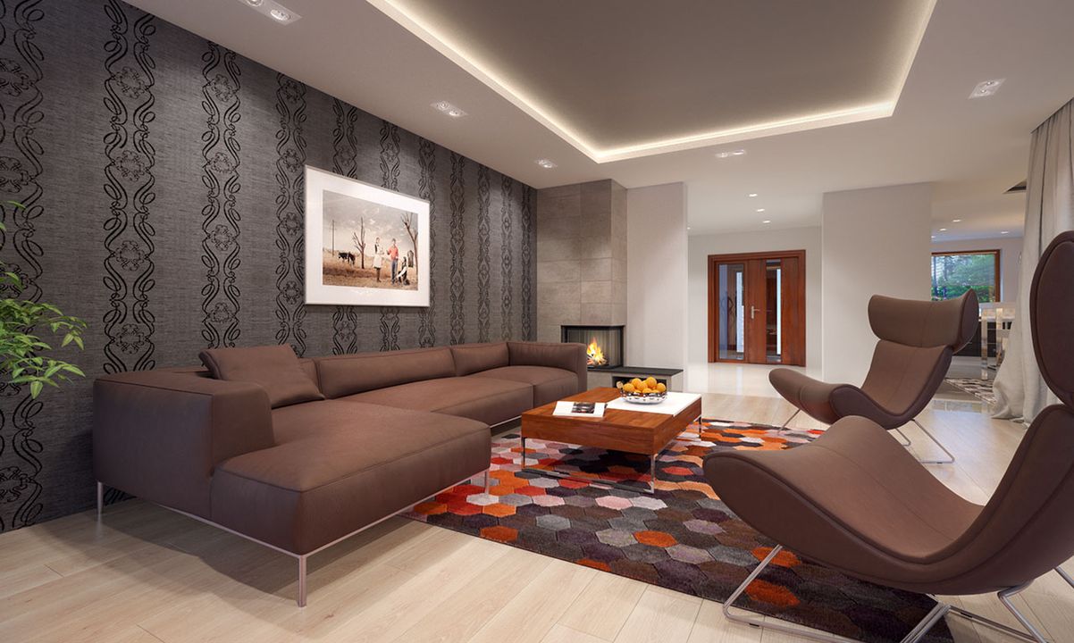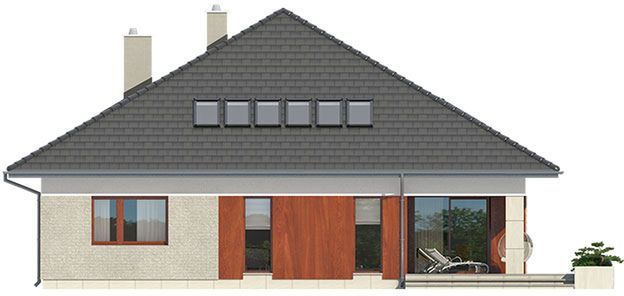 Graficzne opracowanie rzutów poglądowych widocznych na karcie projektu zostało wykonane przez Extradom.pl. Prezentowane przez Extradom.pl wizualizacje wykonane zostały przez autora projektu i należy poczytywać je jedynie za przykład i propozycję wykończenia, wizję architektoniczną autora projektu. Ostateczne wykończenie budynku może nastąpić na wiele sposobów. Szczegółowe rozwiązania zastosowane w oferowanej dokumentacji - w tym również ilość, lokalizacje i wygląd okien, drzwi, kominów - mogą w niewielkim stopniu różnić się od prezentowanej wizualizacji budynku.