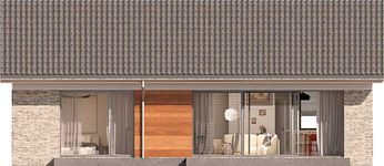 Graficzne opracowanie rzutów poglądowych widocznych na karcie projektu zostało wykonane przez Extradom.pl. Prezentowane przez Extradom.pl wizualizacje wykonane zostały przez autora projektu i należy poczytywać je jedynie za przykład i propozycję wykończenia, wizję architektoniczną autora projektu. Ostateczne wykończenie budynku może nastąpić na wiele sposobów. Szczegółowe rozwiązania zastosowane w oferowanej dokumentacji - w tym również ilość, lokalizacje i wygląd okien, drzwi, kominów - mogą w niewielkim stopniu różnić się od prezentowanej wizualizacji budynku.
