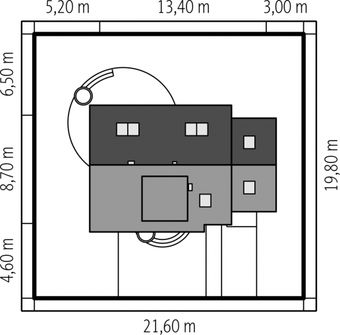 Graficzne opracowanie rzutów poglądowych widocznych na karcie projektu zostało wykonane przez Extradom.pl. Prezentowane przez Extradom.pl wizualizacje wykonane zostały przez autora projektu i należy poczytywać je jedynie za przykład i propozycję wykończenia, wizję architektoniczną autora projektu. Ostateczne wykończenie budynku może nastąpić na wiele sposobów. Szczegółowe rozwiązania zastosowane w oferowanej dokumentacji - w tym również ilość, lokalizacje i wygląd okien, drzwi, kominów - mogą w niewielkim stopniu różnić się od prezentowanej wizualizacji budynku.