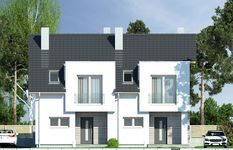 Graficzne opracowanie rzutów poglądowych widocznych na karcie projektu zostało wykonane przez Extradom.pl. Prezentowane przez Extradom.pl wizualizacje wykonane zostały przez autora projektu i należy poczytywać je jedynie za przykład i propozycję wykończenia, wizję architektoniczną autora projektu. Ostateczne wykończenie budynku może nastąpić na wiele sposobów. Szczegółowe rozwiązania zastosowane w oferowanej dokumentacji - w tym również ilość, lokalizacje i wygląd okien, drzwi, kominów - mogą w niewielkim stopniu różnić się od prezentowanej wizualizacji budynku.