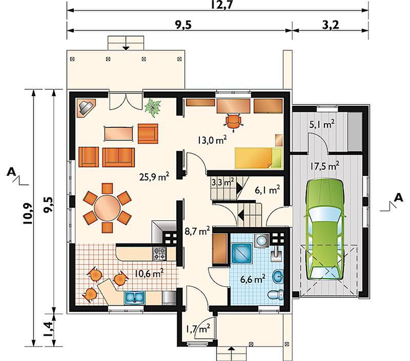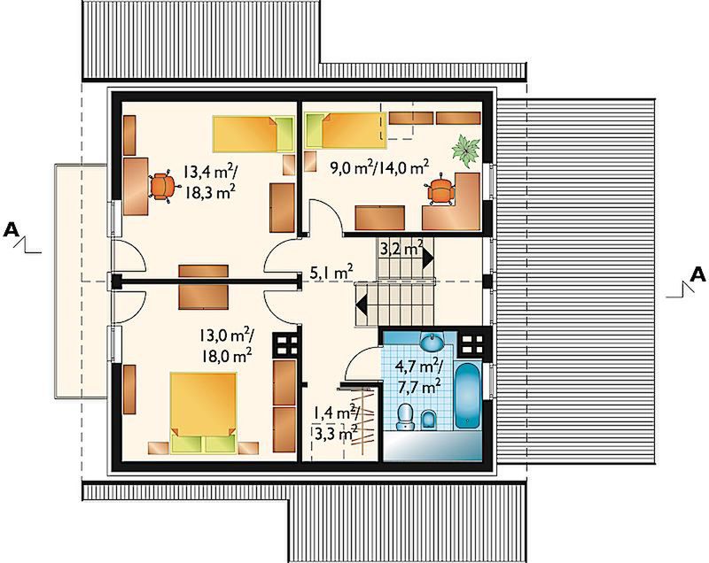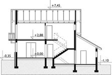 Graficzne opracowanie rzutów poglądowych widocznych na karcie projektu zostało wykonane przez Extradom.pl. Prezentowane przez Extradom.pl wizualizacje wykonane zostały przez autora projektu i należy poczytywać je jedynie za przykład i propozycję wykończenia, wizję architektoniczną autora projektu. Ostateczne wykończenie budynku może nastąpić na wiele sposobów. Szczegółowe rozwiązania zastosowane w oferowanej dokumentacji - w tym również ilość, lokalizacje i wygląd okien, drzwi, kominów - mogą w niewielkim stopniu różnić się od prezentowanej wizualizacji budynku.