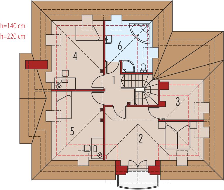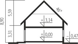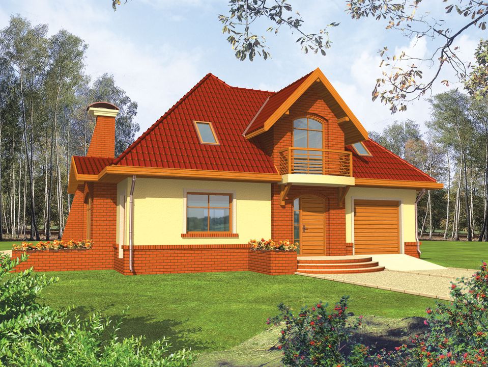 Bryła budynku jest zwieńczona wielospadowym dachem o konstrukcji drewnianej krytym dachówką cementową lub ceramiczną. Dom zaprojektowano w technologii murowej ze stropem gestożebrowym. Schody wewnętrzne drewniane. Elewacja wykonana z tynku mineralnego i okładziny klinkierowej. Stolarka okienna drewniana. Okna połaciowe.