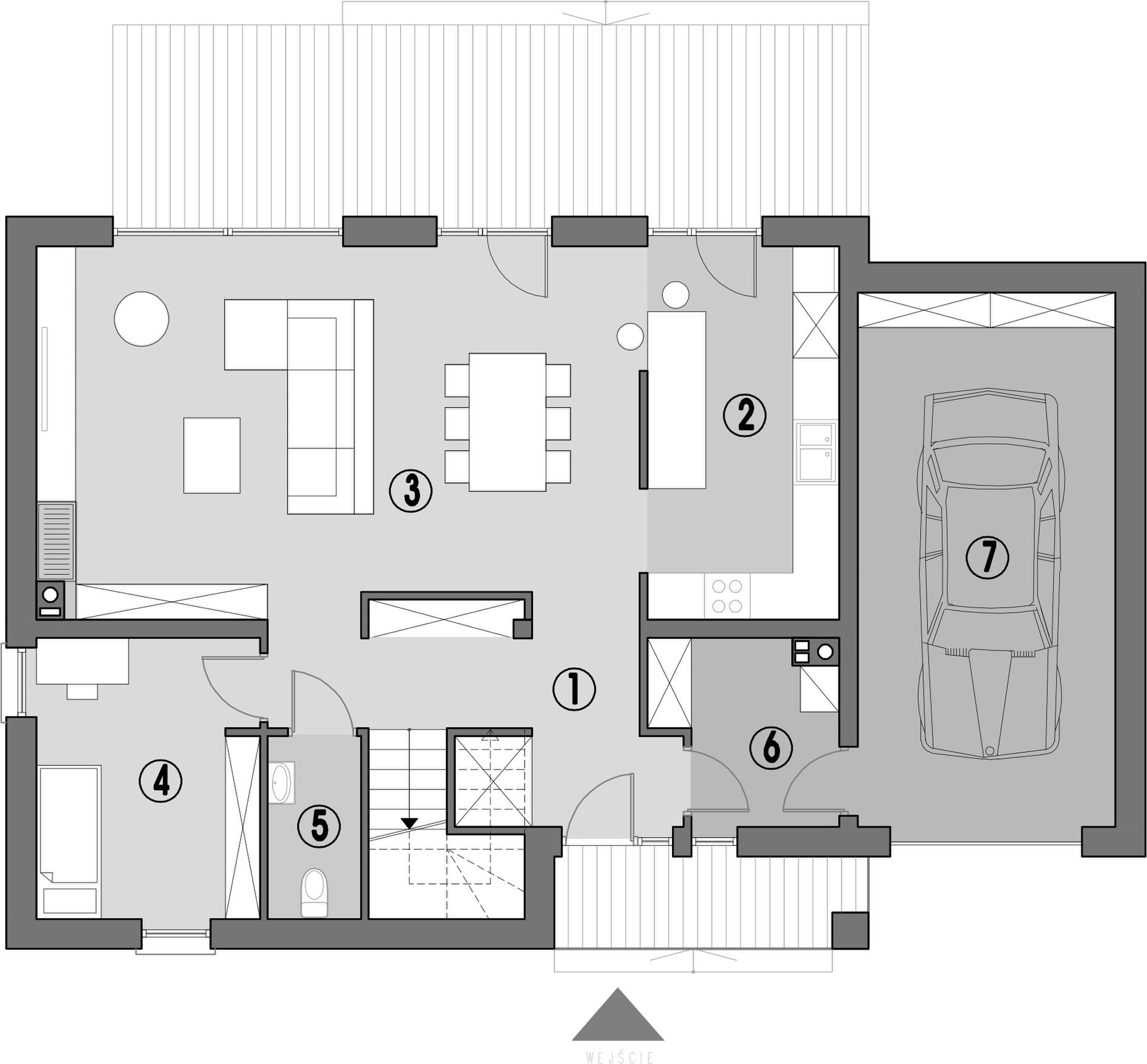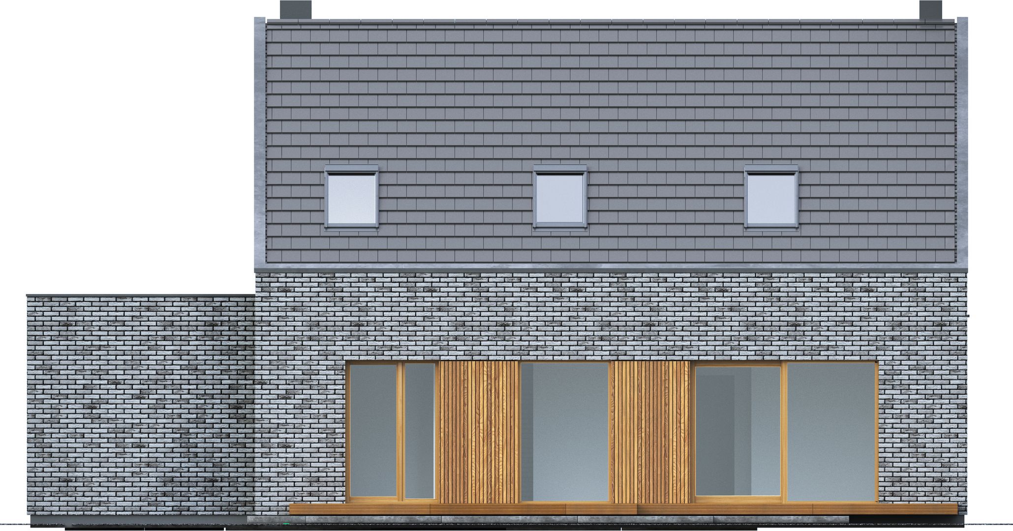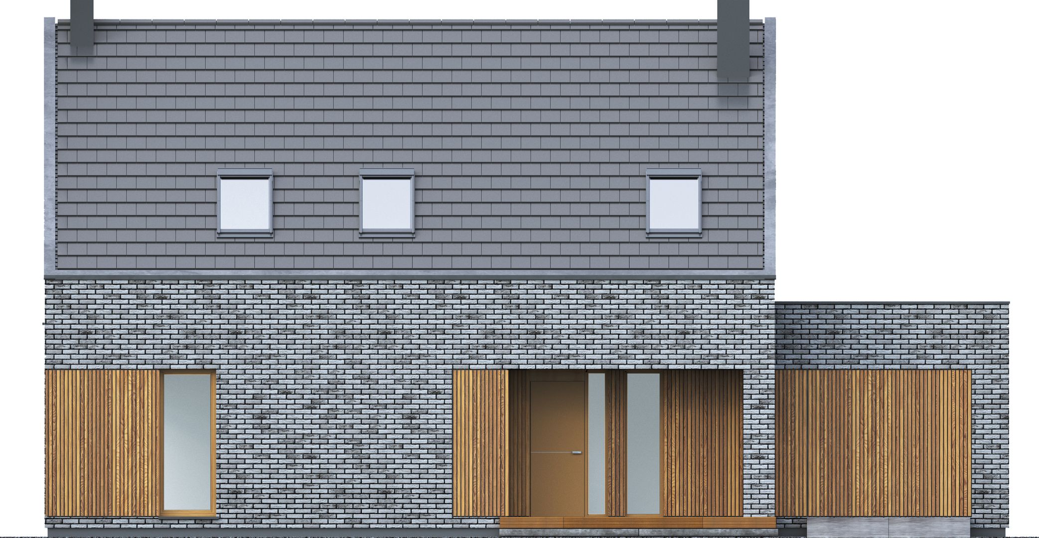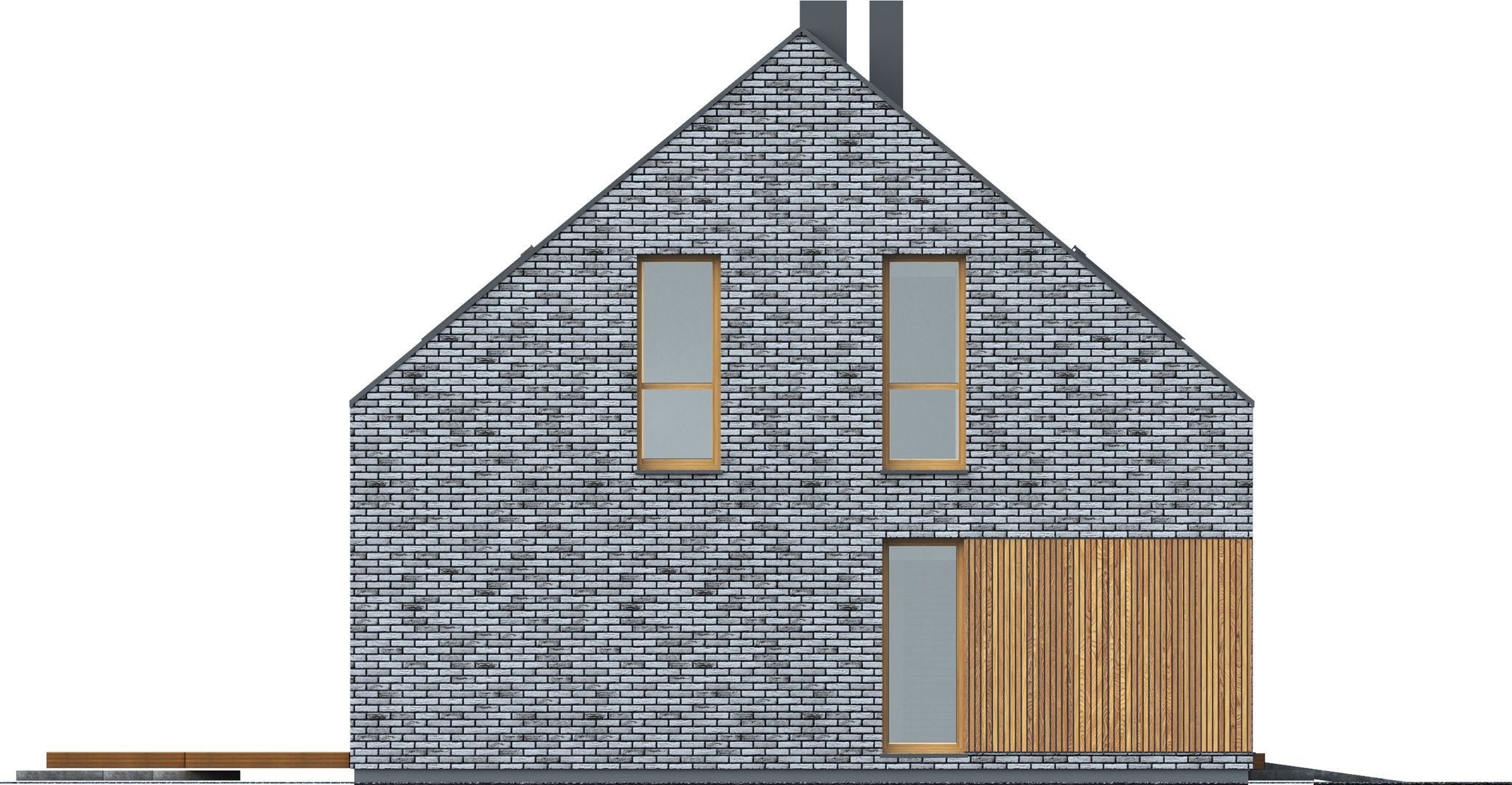 Graficzne opracowanie rzutów poglądowych widocznych na karcie projektu zostało wykonane przez Extradom.pl. Prezentowane przez Extradom.pl wizualizacje wykonane zostały przez autora projektu i należy poczytywać je jedynie za przykład i propozycję wykończenia, wizję architektoniczną autora projektu. Ostateczne wykończenie budynku może nastąpić na wiele sposobów. Szczegółowe rozwiązania zastosowane w oferowanej dokumentacji - w tym również ilość, lokalizacje i wygląd okien, drzwi, kominów - mogą w niewielkim stopniu różnić się od prezentowanej wizualizacji budynku.