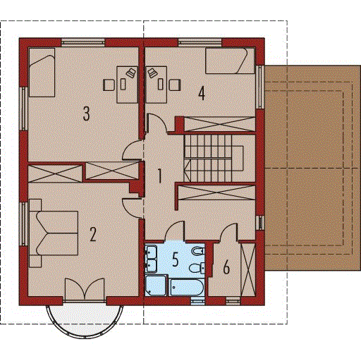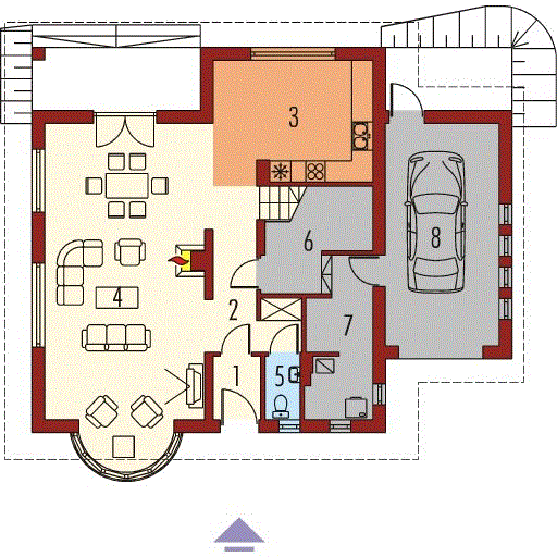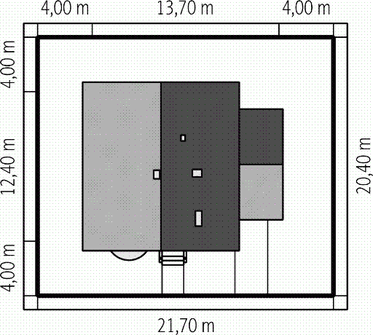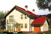Graficzne opracowanie rzutów poglądowych widocznych na karcie projektu zostało wykonane przez Extradom.pl. Prezentowane przez Extradom.pl wizualizacje wykonane zostały przez autora projektu i należy poczytywać je jedynie za przykład i propozycję wykończenia, wizję architektoniczną autora projektu. Ostateczne wykończenie budynku może nastąpić na wiele sposobów. Szczegółowe rozwiązania zastosowane w oferowanej dokumentacji - w tym również ilość, lokalizacje i wygląd okien, drzwi, kominów - mogą w niewielkim stopniu różnić się od prezentowanej wizualizacji budynku.