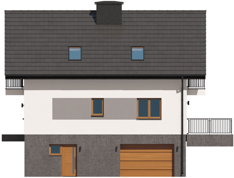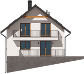 Graficzne opracowanie rzutów poglądowych widocznych na karcie projektu zostało wykonane przez Extradom.pl. Prezentowane przez Extradom.pl wizualizacje wykonane zostały przez autora projektu i należy poczytywać je jedynie za przykład i propozycję wykończenia, wizję architektoniczną autora projektu. Ostateczne wykończenie budynku może nastąpić na wiele sposobów. Szczegółowe rozwiązania zastosowane w oferowanej dokumentacji - w tym również ilość, lokalizacje i wygląd okien, drzwi, kominów - mogą w niewielkim stopniu różnić się od prezentowanej wizualizacji budynku.