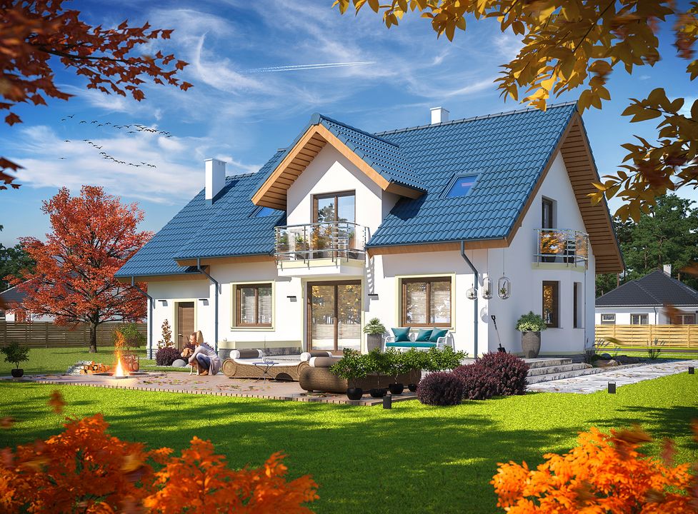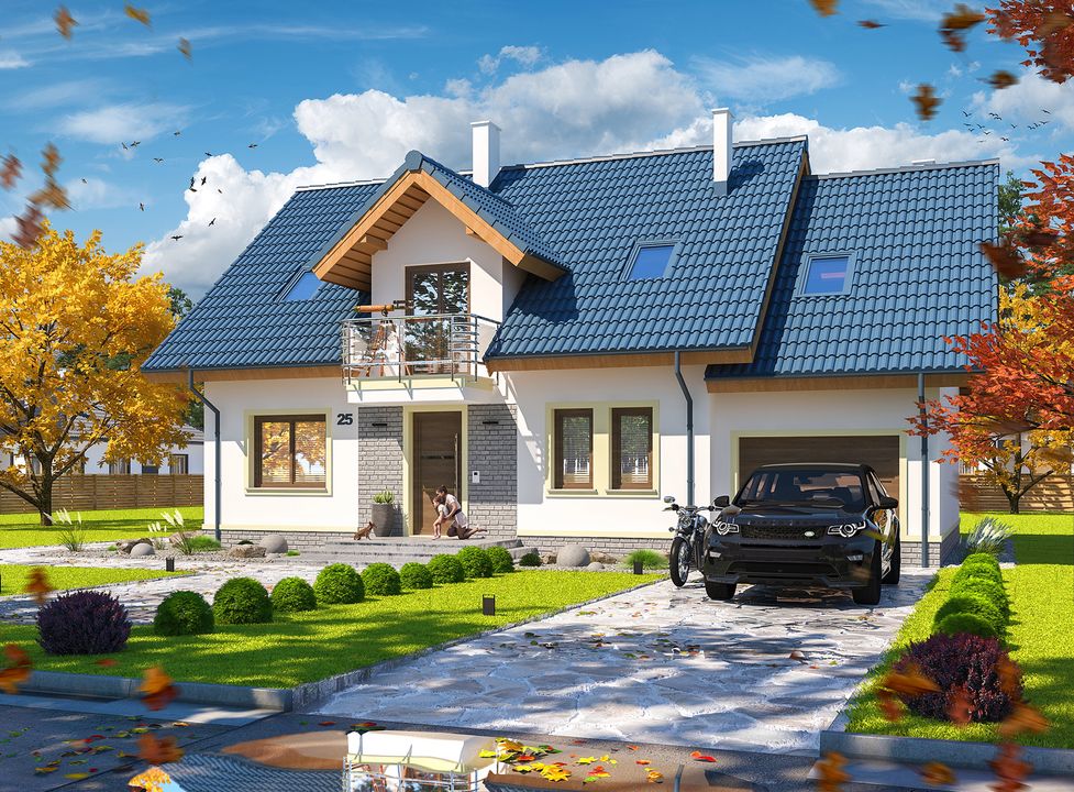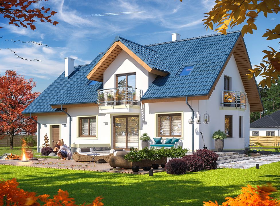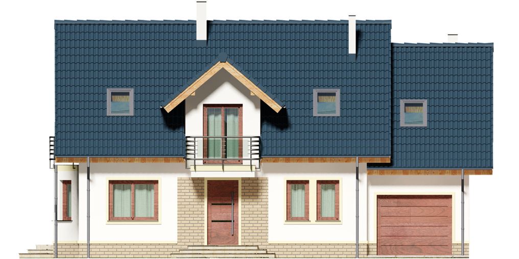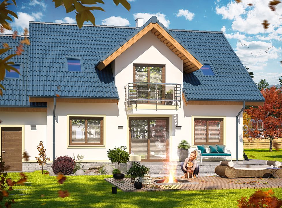 Graficzne opracowanie rzutów poglądowych widocznych na karcie projektu zostało wykonane przez Extradom.pl. Prezentowane przez Extradom.pl wizualizacje wykonane zostały przez autora projektu i należy poczytywać je jedynie za przykład i propozycję wykończenia, wizję architektoniczną autora projektu. Ostateczne wykończenie budynku może nastąpić na wiele sposobów. Szczegółowe rozwiązania zastosowane w oferowanej dokumentacji - w tym również ilość, lokalizacje i wygląd okien, drzwi, kominów - mogą w niewielkim stopniu różnić się od prezentowanej wizualizacji budynku.