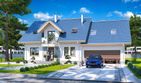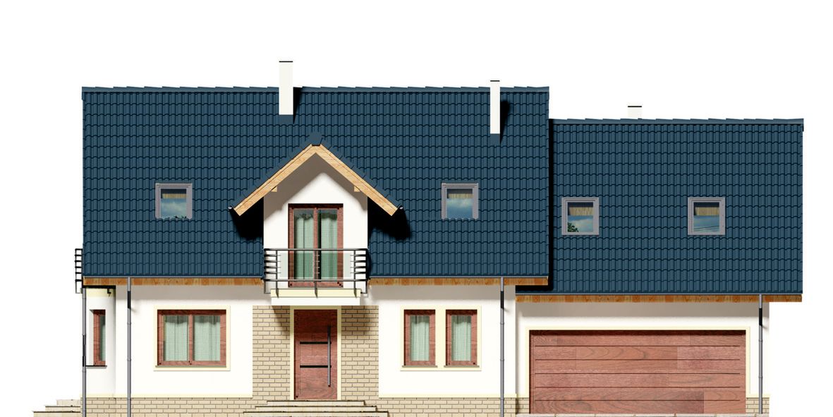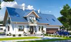 Graficzne opracowanie rzutów poglądowych widocznych na karcie projektu zostało wykonane przez Extradom.pl. Prezentowane przez Extradom.pl wizualizacje wykonane zostały przez autora projektu i należy poczytywać je jedynie za przykład i propozycję wykończenia, wizję architektoniczną autora projektu. Ostateczne wykończenie budynku może nastąpić na wiele sposobów. Szczegółowe rozwiązania zastosowane w oferowanej dokumentacji - w tym również ilość, lokalizacje i wygląd okien, drzwi, kominów - mogą w niewielkim stopniu różnić się od prezentowanej wizualizacji budynku.