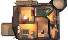 Graficzne opracowanie rzutów poglądowych widocznych na karcie projektu zostało wykonane przez Extradom.pl. Prezentowane przez Extradom.pl wizualizacje wykonane zostały przez autora projektu i należy poczytywać je jedynie za przykład i propozycję wykończenia, wizję architektoniczną autora projektu. Ostateczne wykończenie budynku może nastąpić na wiele sposobów. Szczegółowe rozwiązania zastosowane w oferowanej dokumentacji - w tym również ilość, lokalizacje i wygląd okien, drzwi, kominów - mogą w niewielkim stopniu różnić się od prezentowanej wizualizacji budynku.