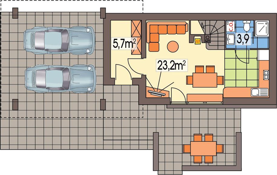 Jacek wersja B z wiatą na 2 auta paliwo stałe - WRD2270