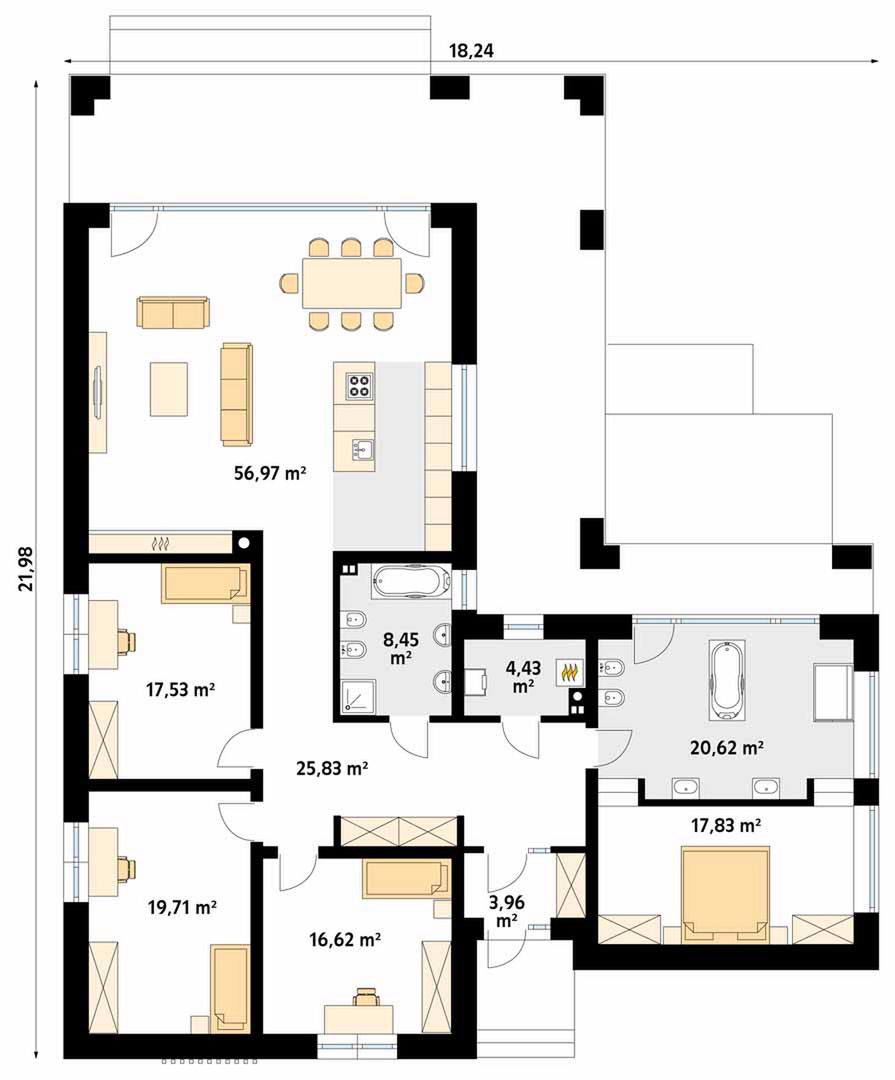 PROJEKT Z BUDOWĄ Istnieje możliwość zaadaptowania tego projektu do technologii prefabrykowanej/modułowej i budowy nawet w 6 miesięcy ze stałym kosztem budowy