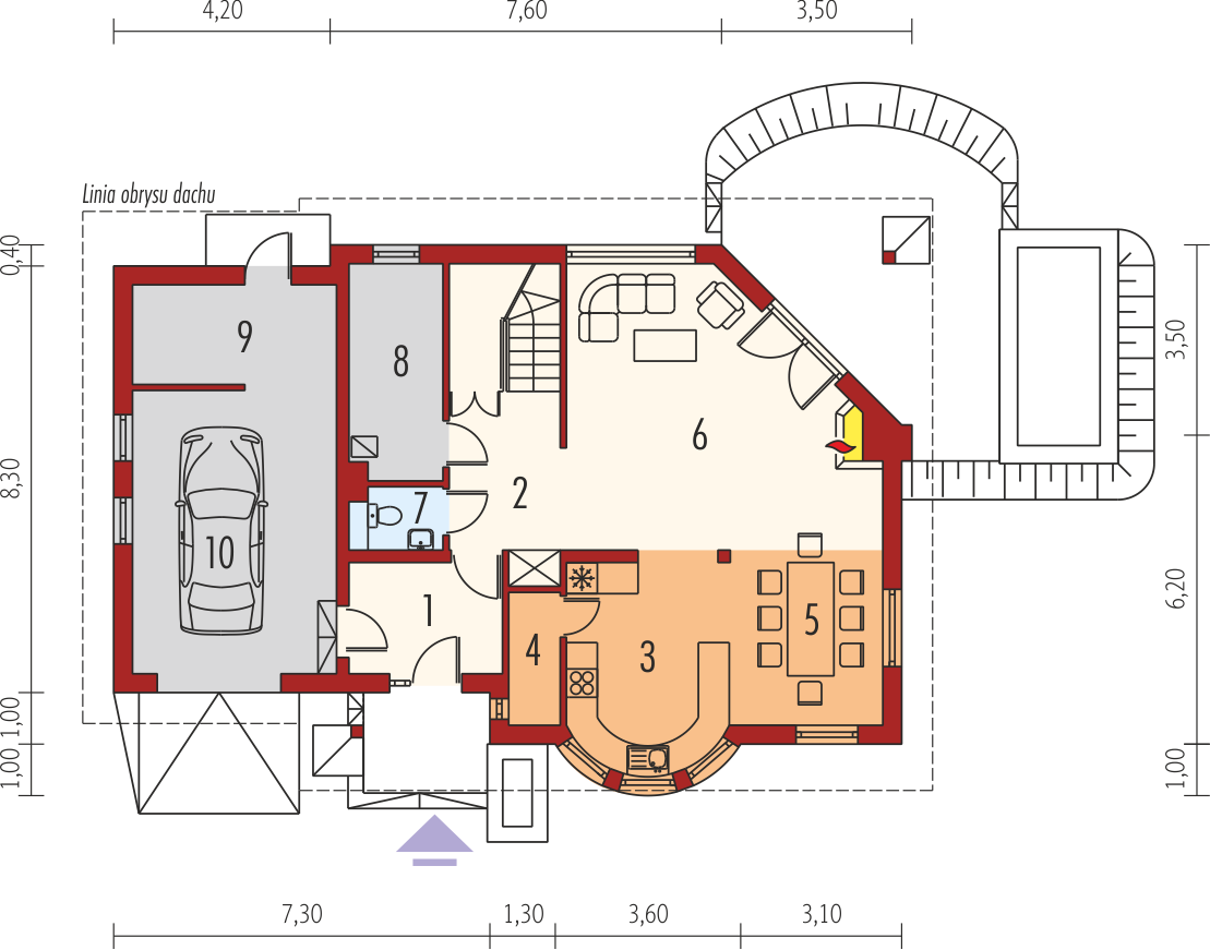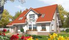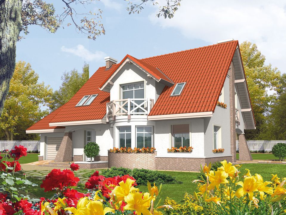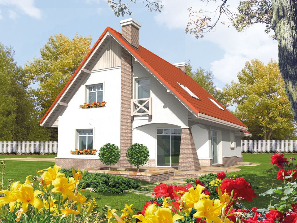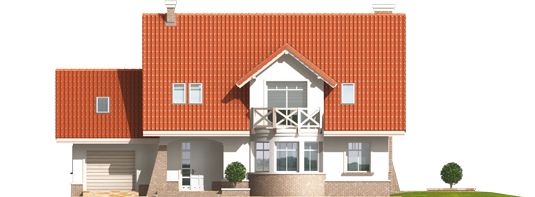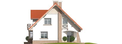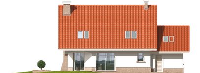 Graficzne opracowanie rzutów poglądowych widocznych na karcie projektu zostało wykonane przez Extradom.pl. Prezentowane przez Extradom.pl wizualizacje wykonane zostały przez autora projektu i należy poczytywać je jedynie za przykład i propozycję wykończenia, wizję architektoniczną autora projektu. Ostateczne wykończenie budynku może nastąpić na wiele sposobów. Szczegółowe rozwiązania zastosowane w oferowanej dokumentacji - w tym również ilość, lokalizacje i wygląd okien, drzwi, kominów - mogą w niewielkim stopniu różnić się od prezentowanej wizualizacji budynku.