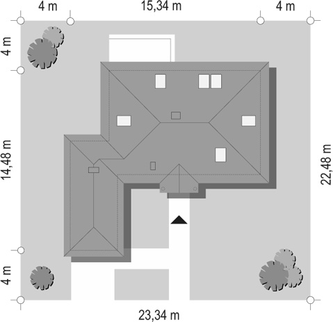 Fundamenty: betonowe. Ściany zewnętrzne: murowane - gazobeton + styropian, lub porotherm + wełna mineralna. Ściany wewnętrzne: murowane - cegła lub gazobeton. Strop: teriva. Elewacje: tynk cienkowarstwowy. Pokrycie dachu: dachówka ceramiczna lub blachodachówka. Nachylenie dachu: 36 stopni.