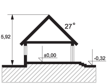 Ściany dwuwarstwowe z pustaków ceramicznych + izolacja termiczna. Dach czterospadowy. Stropy gęstożebrowy żelbetowe, prefabrykowane.