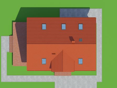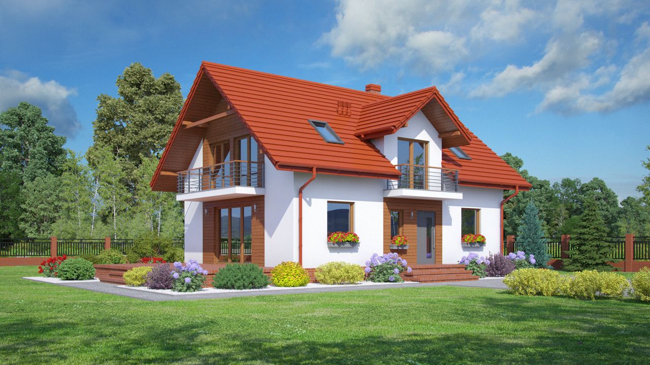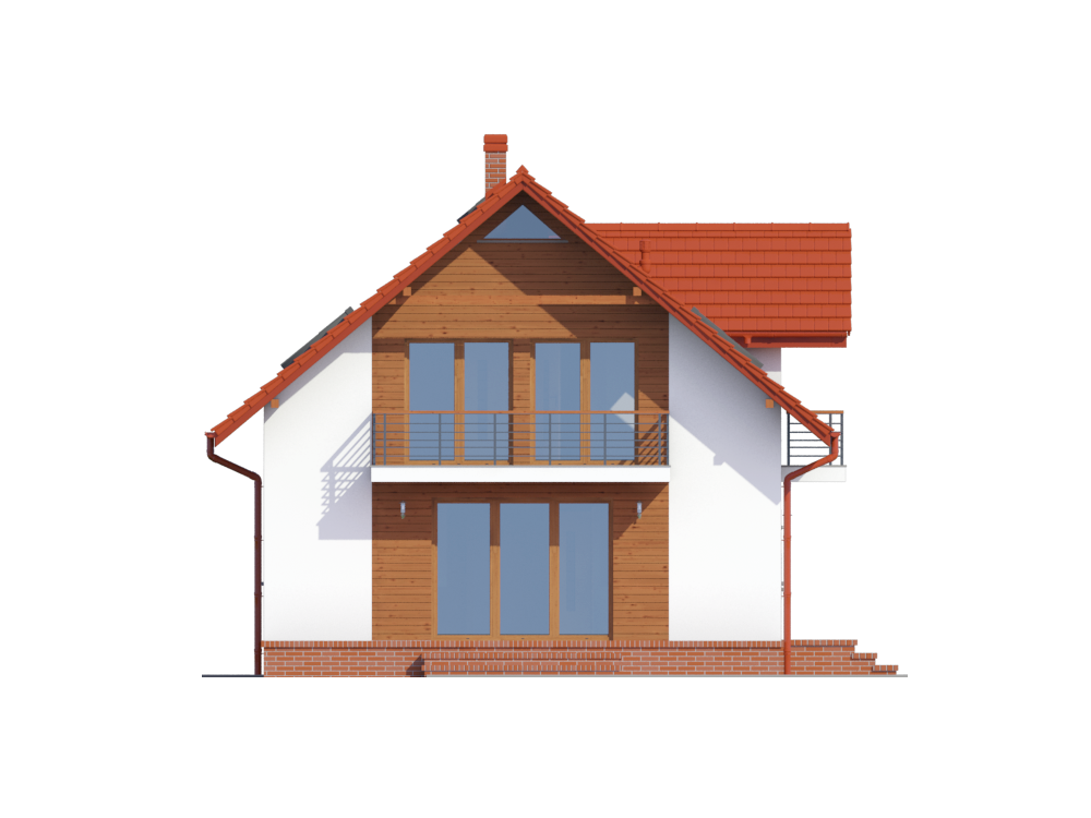 Graficzne opracowanie rzutów poglądowych widocznych na karcie projektu zostało wykonane przez Extradom.pl. Prezentowane przez Extradom.pl wizualizacje wykonane zostały przez autora projektu i należy poczytywać je jedynie za przykład i propozycję wykończenia, wizję architektoniczną autora projektu. Ostateczne wykończenie budynku może nastąpić na wiele sposobów. Szczegółowe rozwiązania zastosowane w oferowanej dokumentacji - w tym również ilość, lokalizacje i wygląd okien, drzwi, kominów - mogą w niewielkim stopniu różnić się od prezentowanej wizualizacji budynku.
